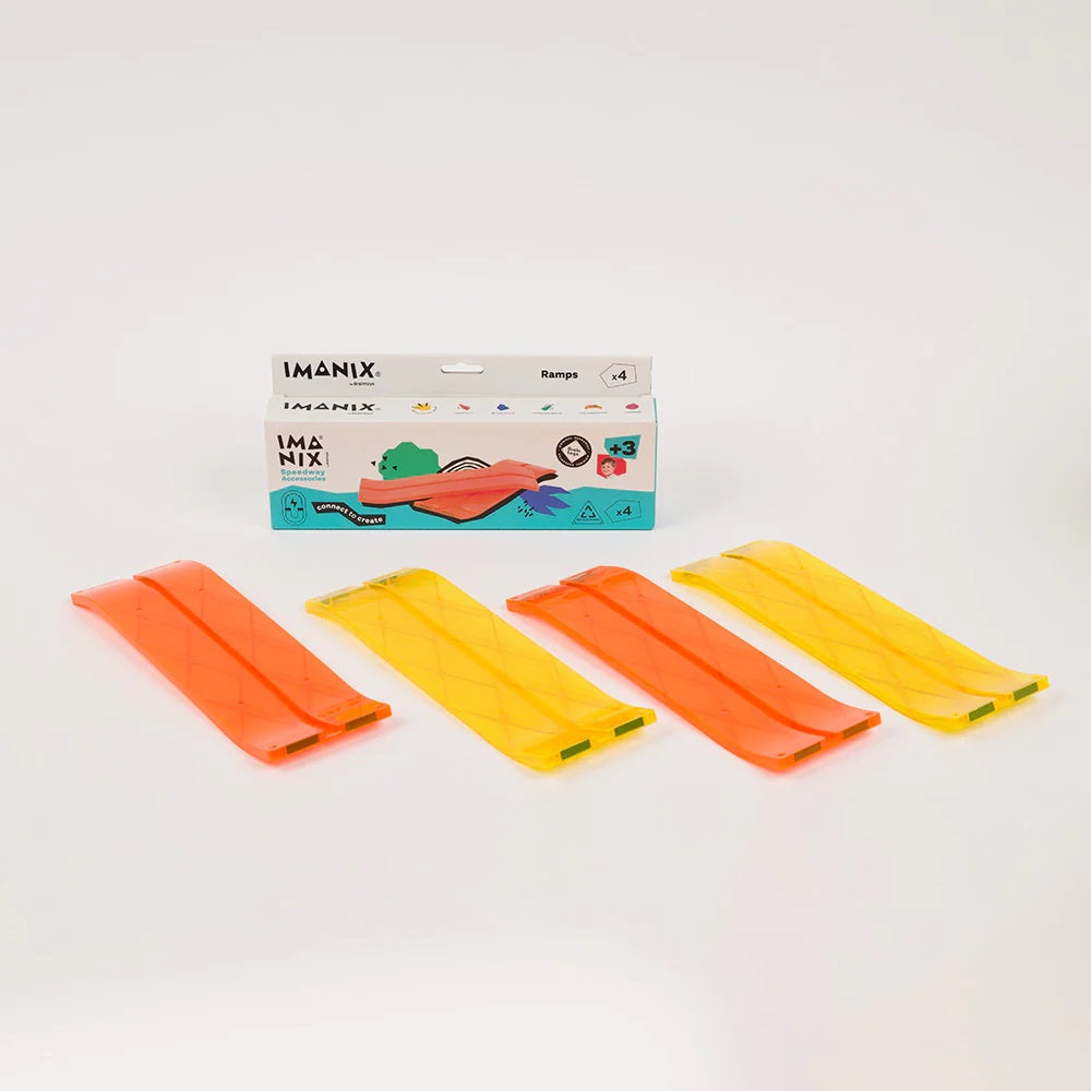 Construye tu propia pista en 3D con los accesorios magnéticos de IMANIX. Además, para darle mayor emoción a tu carrera, puedes utilizar el versátil set de rampas. Por otro lado, deja volar tu imaginación y crea circuitos únicos y emocionantes. Atrévete a desafiar a tus amigos y familiares en divertidas competencias.