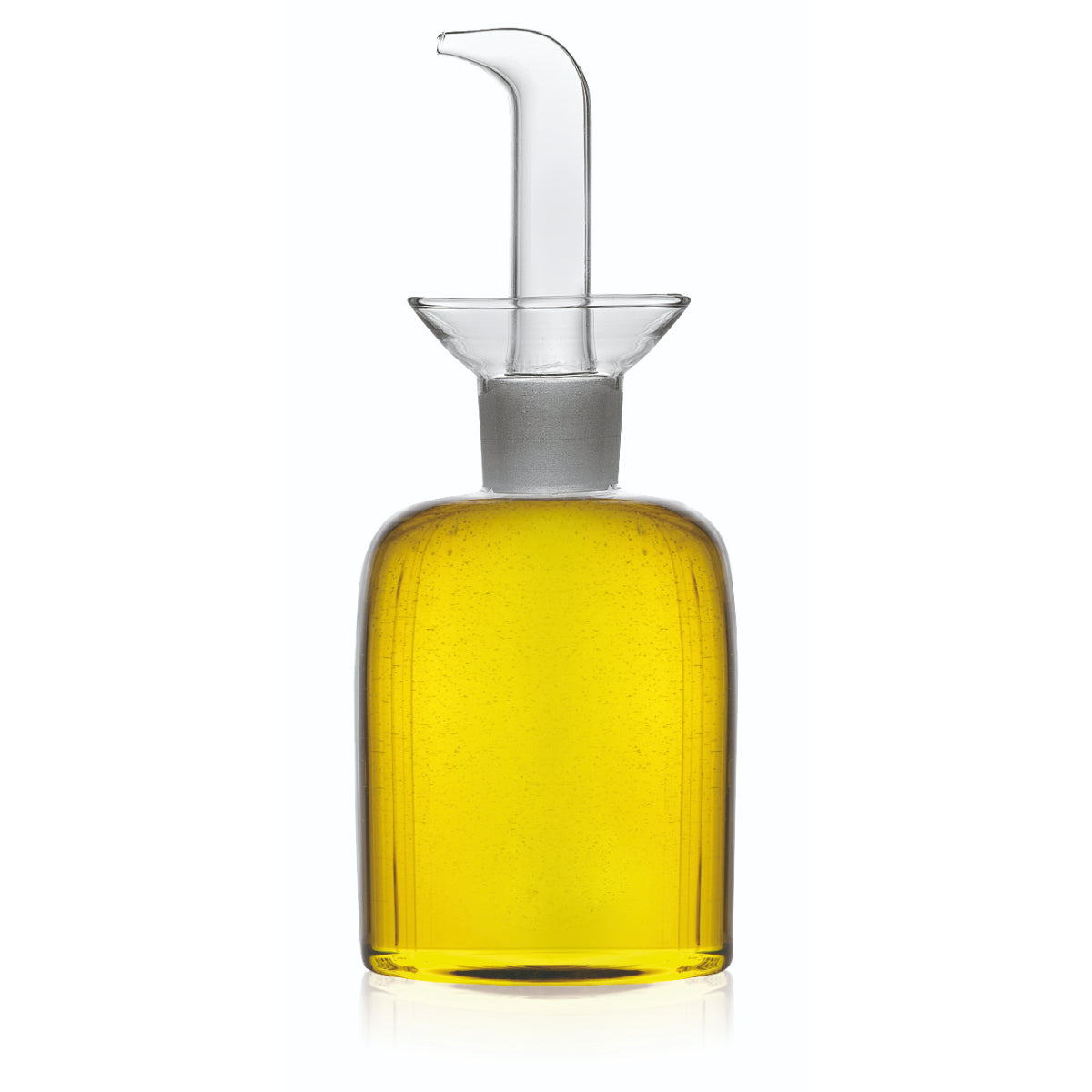 Aceitera de 500 ml de capacidad de vidrio transparente. Sistema antigoteo.