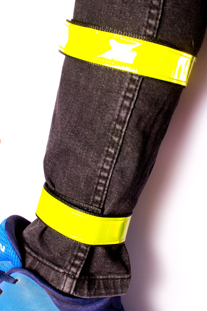 Set de reflectantes puede ser utilizado en tu tobillo, para proteger el pantalón de la grasa de la cadena y también en el brazo izquierdo para mejor visibilidad.