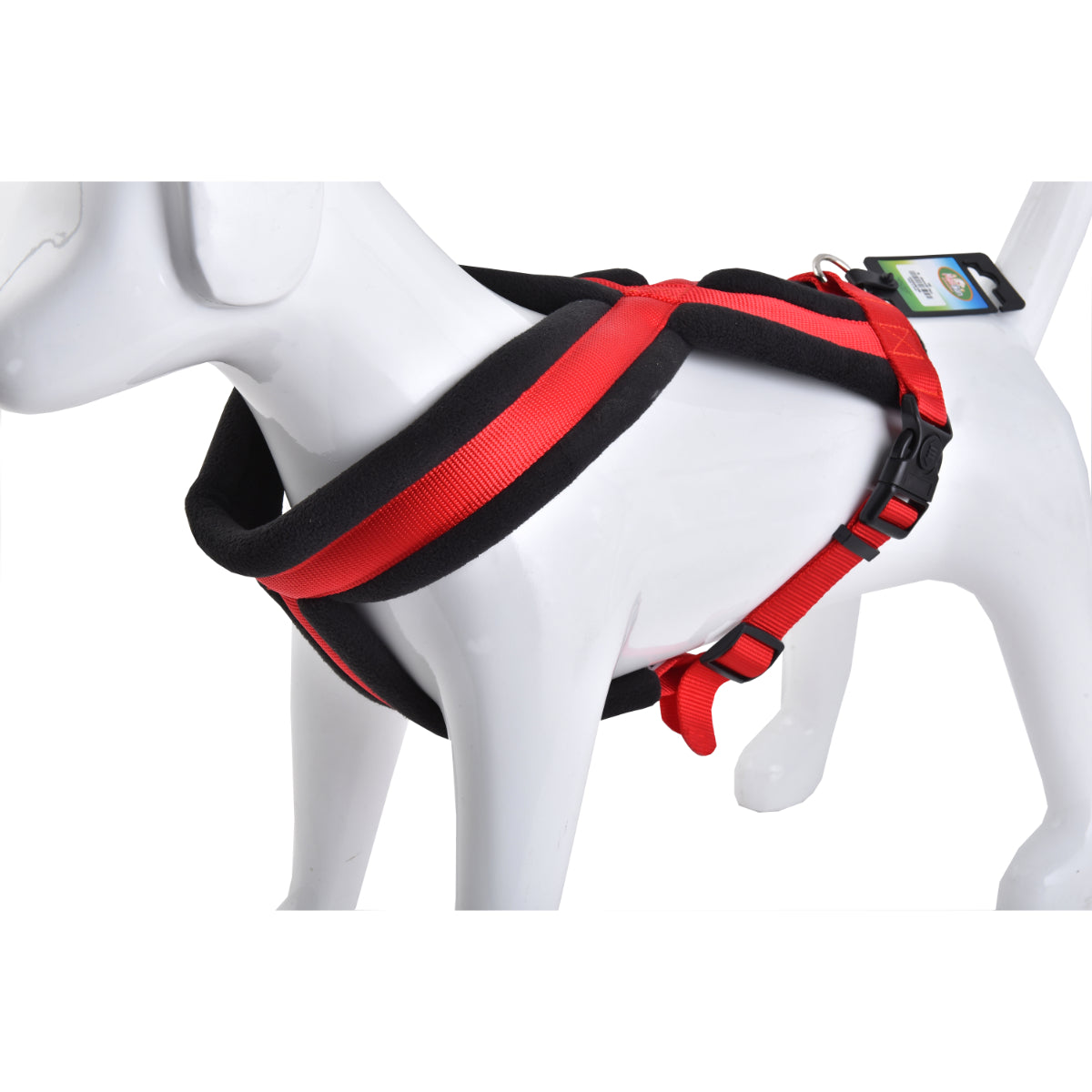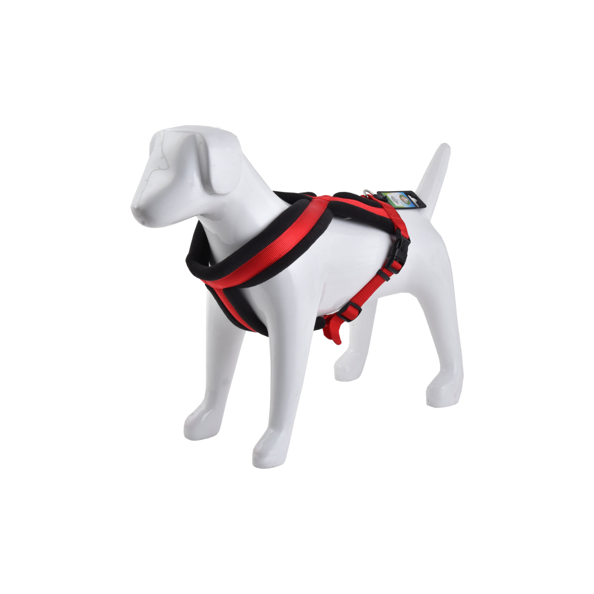 Para que el regalón de la casa se sienta cómodo y seguro en todas sus salidas, Mascan trae para ti este arnés muy confortable y acolchado, con un diseño cruzado que facilita el control en su paseo y un clip de seguridad para tu tranquilidad y la de tu mascota. Está hecho 100% de nylon y lo tenemos en distintos colores: azul, fucsia y rojo. Decídete por el color y tamaño que más te guste y disfruta con tu perro de agradables paseos.