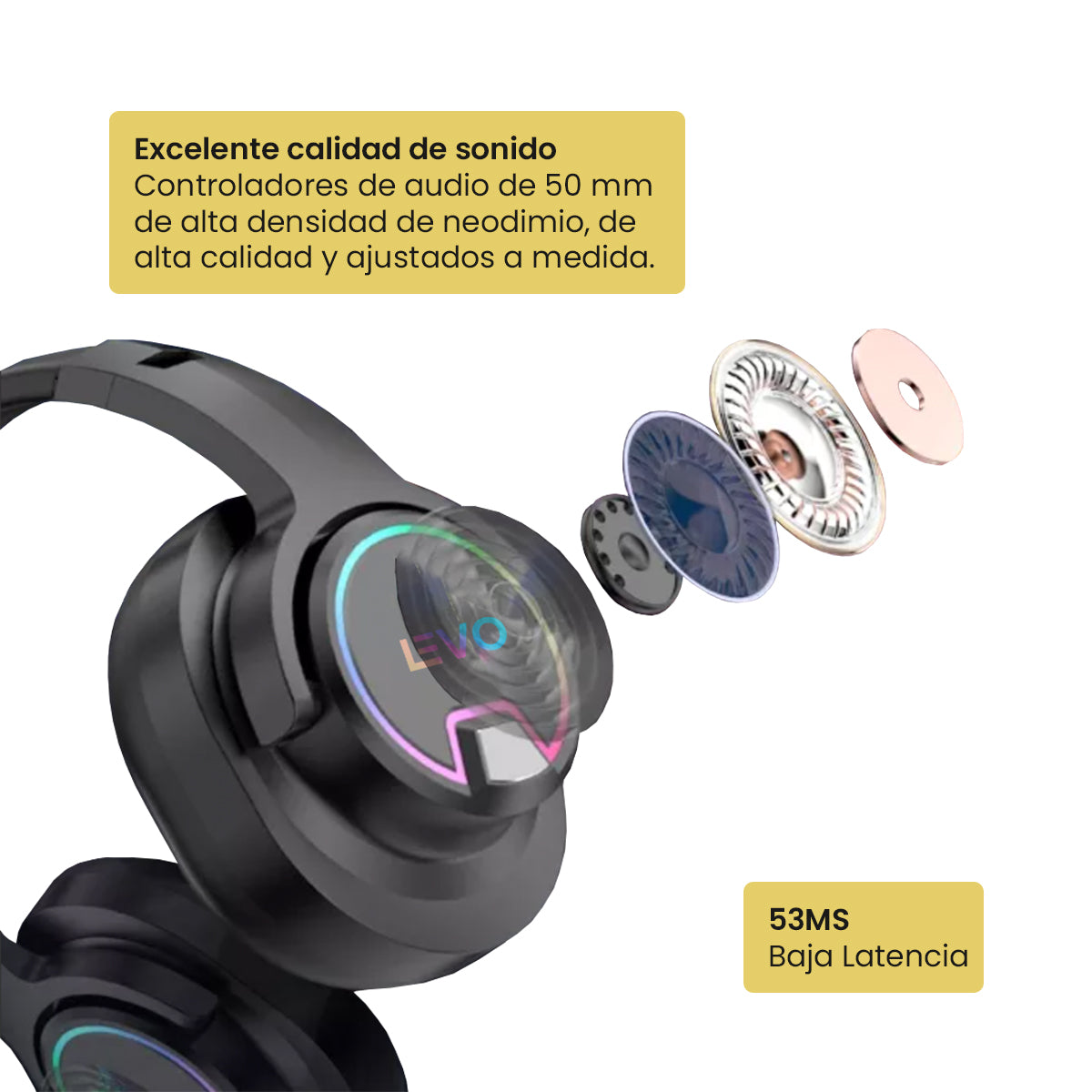 Excelente calidad de sonido: Controladores de audio de 50 mm de alta densidad de neodimio, ajustados a medida y de alta calidad.
