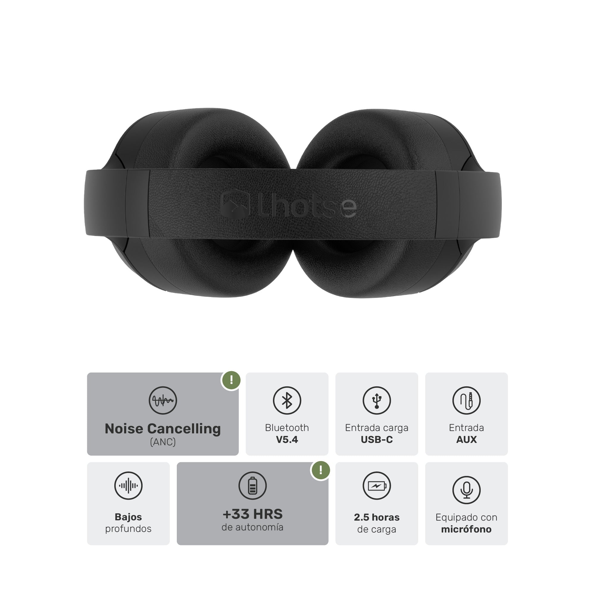 • Duración batería por 33 horas de uso continuo y 29 con ANC activado