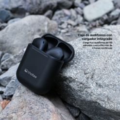 • Caja de audífonos con cargador integrado.