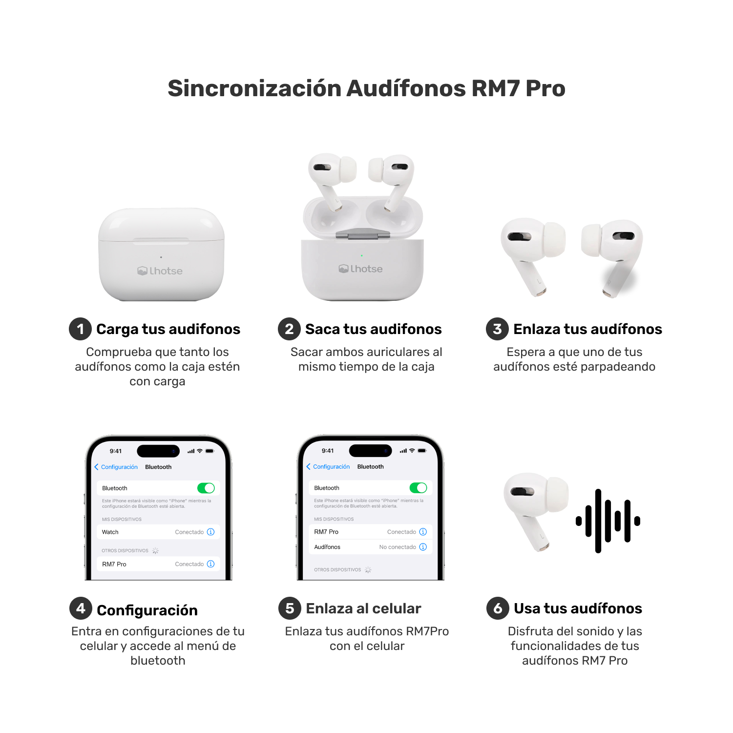 Los audífonos inalámbricos RM7 Pro de Lhotse son la combinación perfecta de tecnología avanzada y funcionalidad práctica para un estilo de vida activo. Con sonido envolvente y cancelación de ruido, estos audífonos están diseñados para ofrecer una experiencia auditiva excepcional. Disfruta de más de 4 horas de música continua y controla fácilmente tu música o llamadas mediante su intuitivo control táctil. Su conectividad Bluetooth de hasta 10 metros y la función Stereo Call con micrófono integrado te brindan llamadas nítidas y de calidad, perfectas para el uso diario.