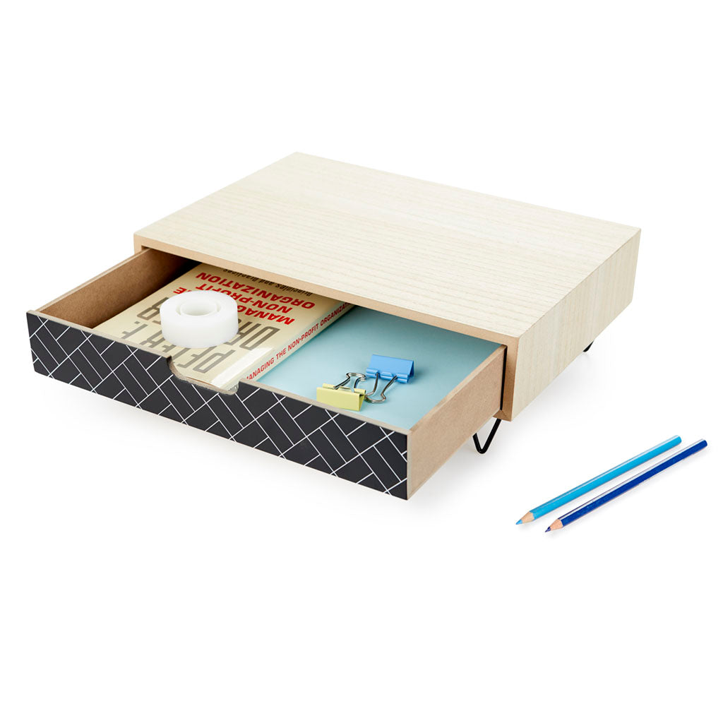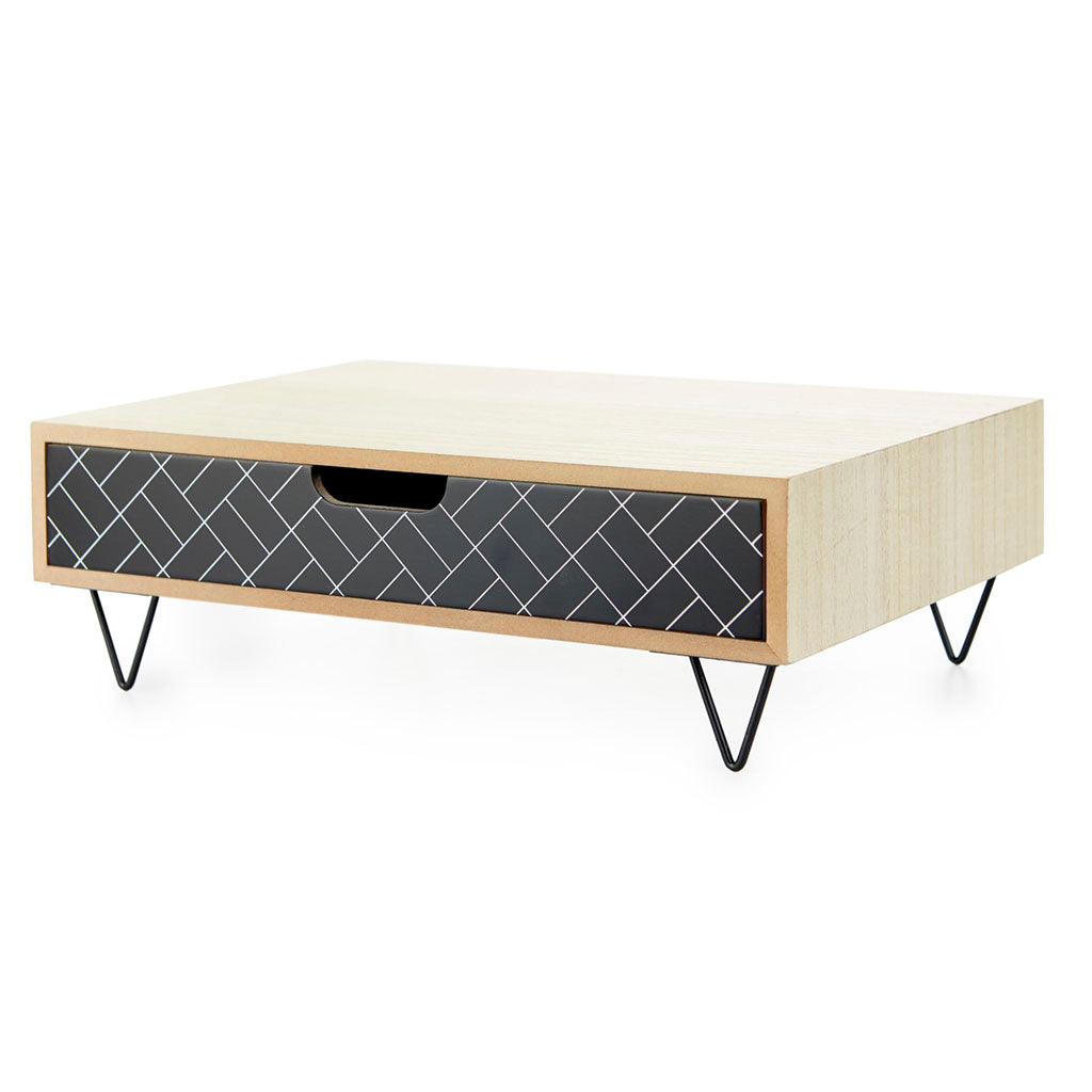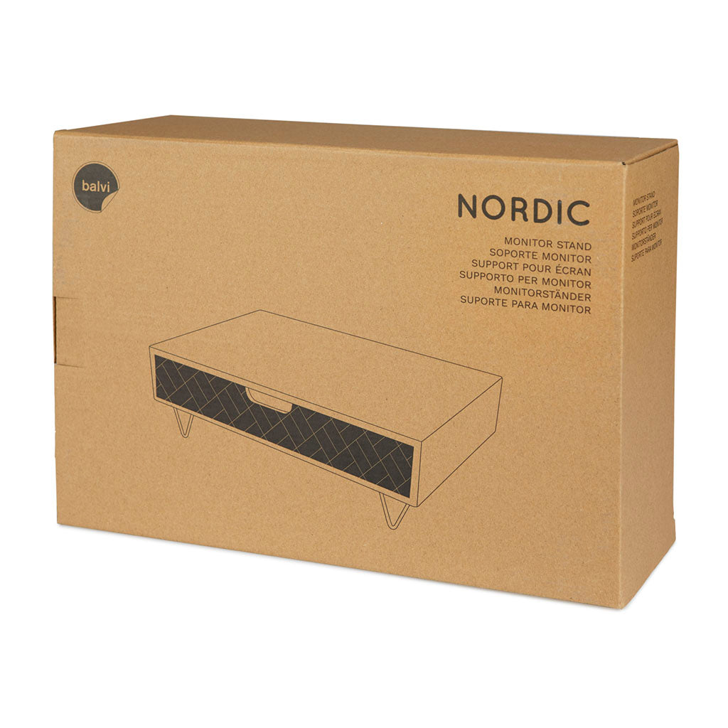 Balvi Soporte Monitor Nordic Color negro Alza pantalla con cajón para papeles Madera 11,4×34,4×23,8cm