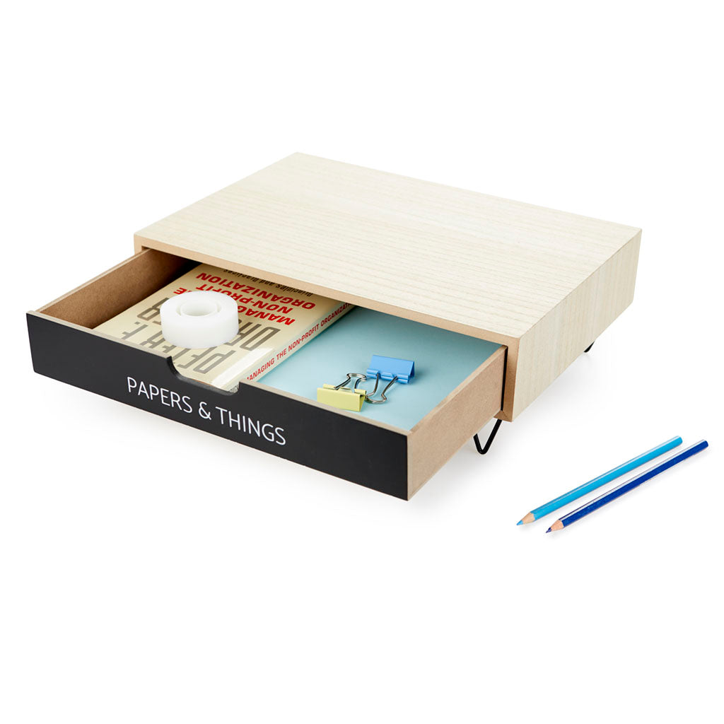 Balvi Soporte Monitor Nordic Color negro Alza pantalla con cajón para papeles Madera 11,4×34,4×23,8cm