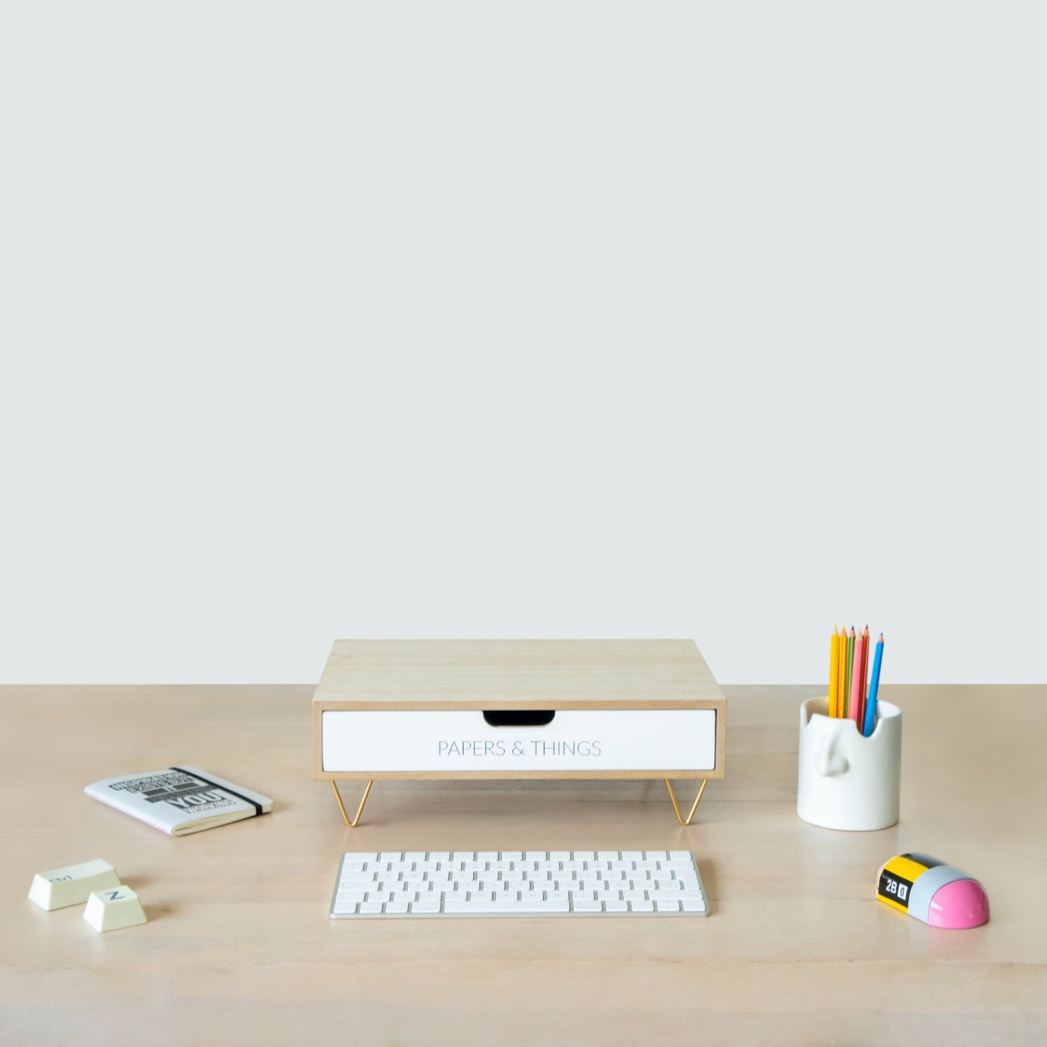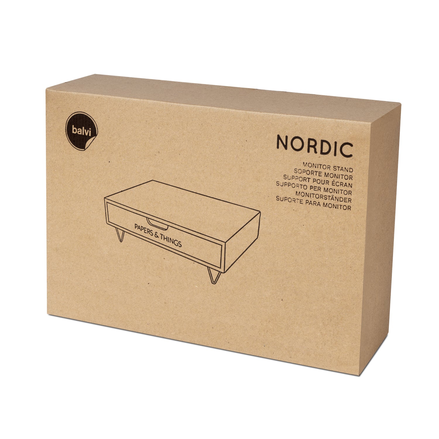 Balvi Soporte monitor Nordic Color blanco Alza pantallas Con cajón Madera DM 34,4cm