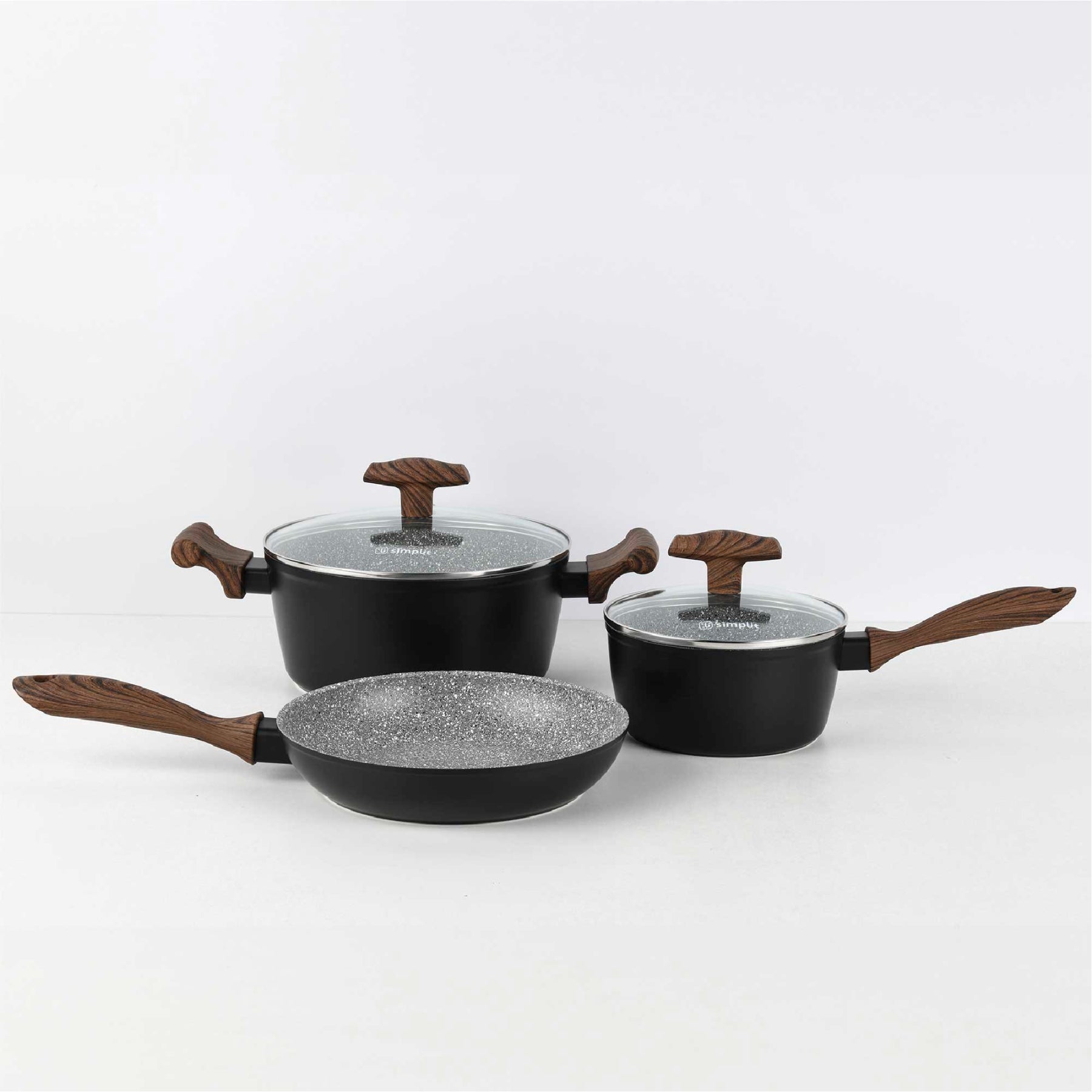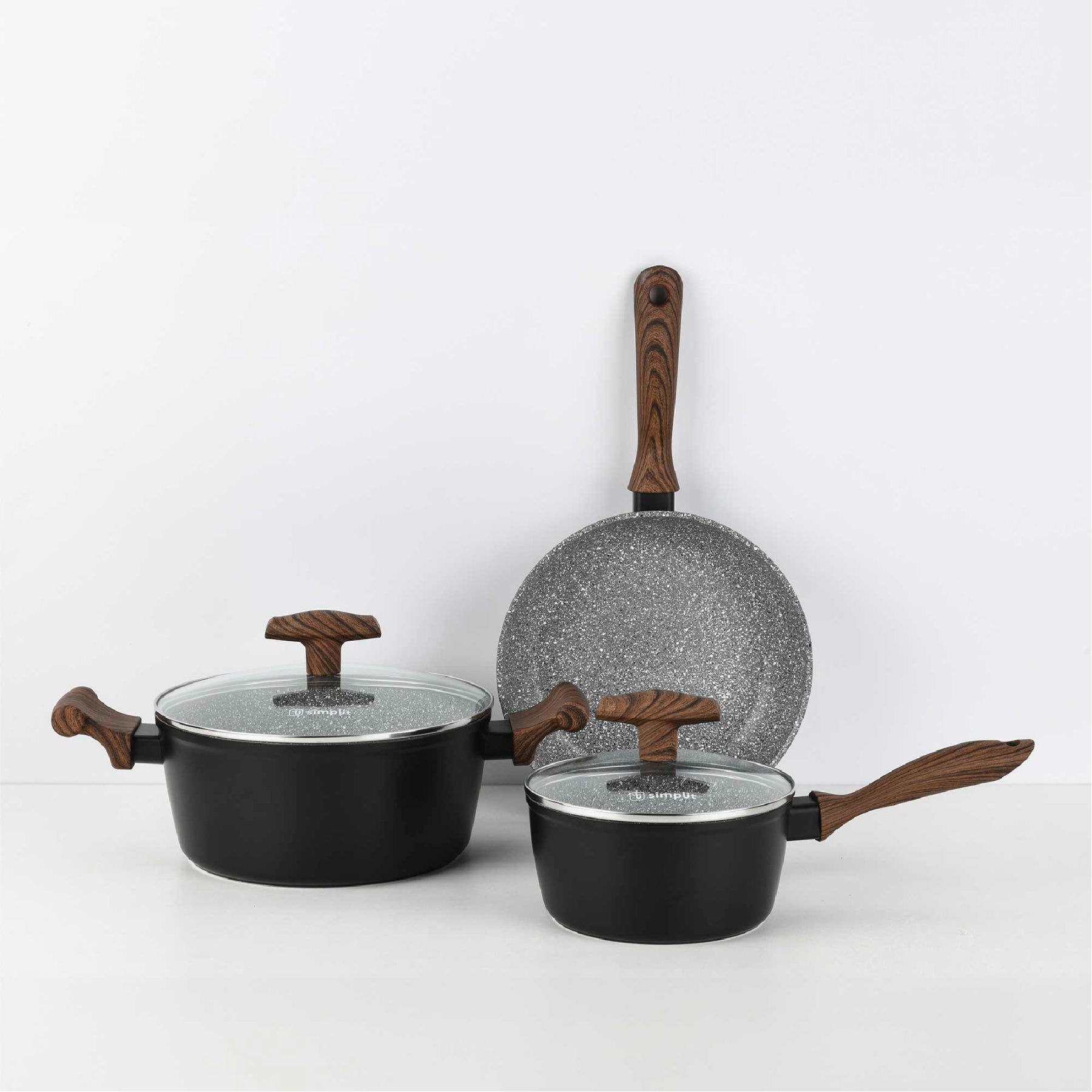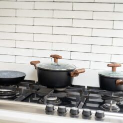 El material de Aluminio Forjado de alta calidad con un revestimiento de mármol ultra antiadherente garantiza que tus comidas se cocinen de manera uniforme y sin que nada se quede pegado. No más preocupaciones por la limpieza, ya que estas ollas son muy fáciles de lavar.