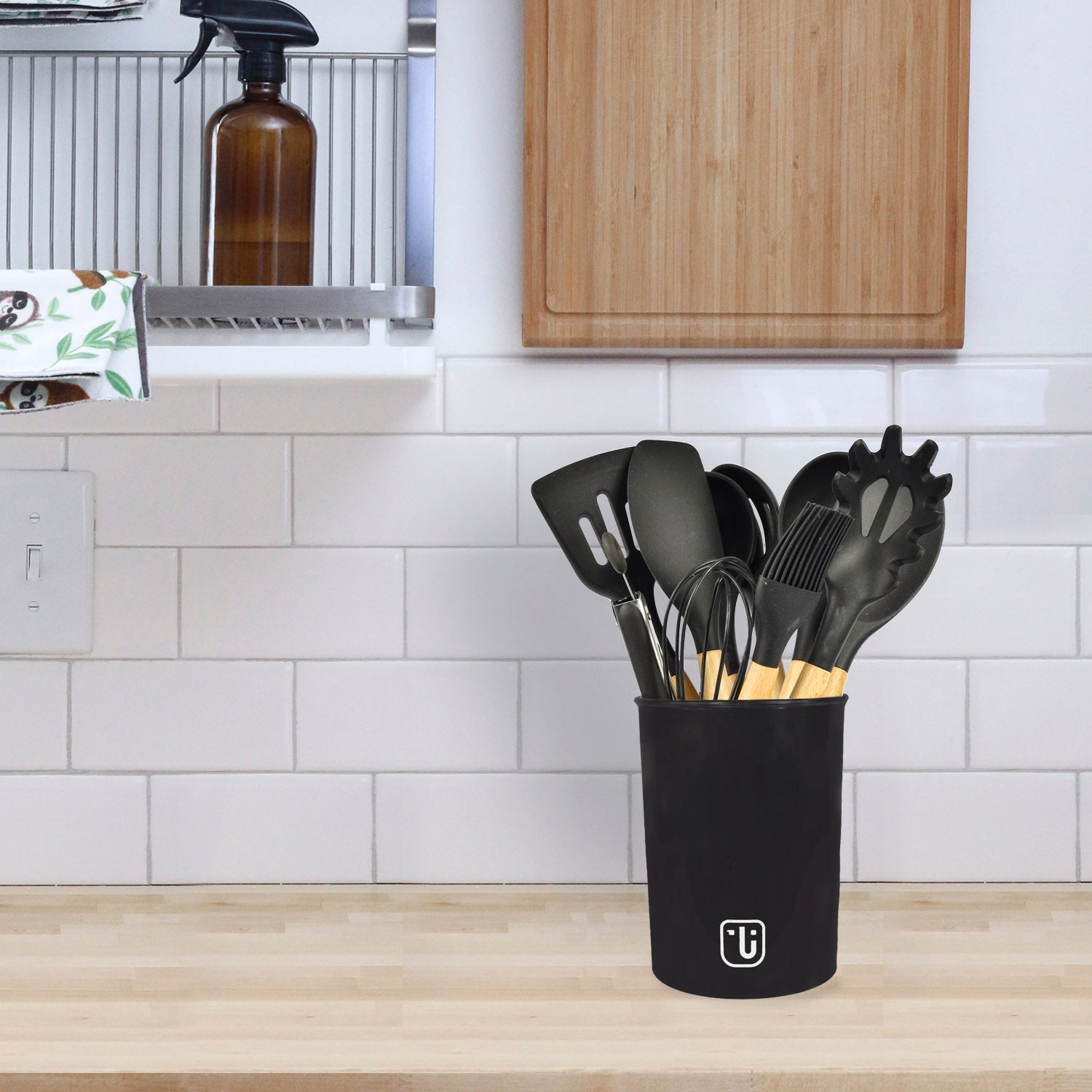 • Espátula ranurada • Cucharón • Servidor Spaghetti • Cuchara ranurada • Espátula Wok • Espátula de cuchara • Cuchara • Espátula Flexible • Tenazas • Batidor manual • Cepillo para rociar • Contenedor