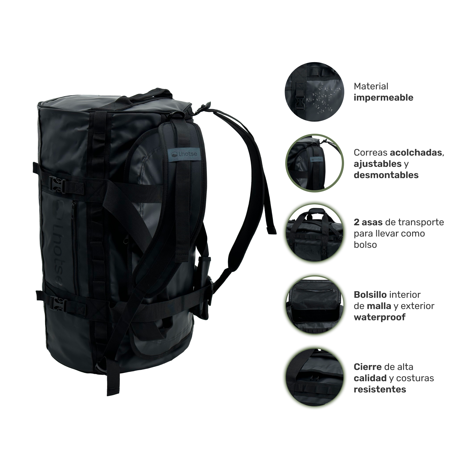 • Construcción 100% impermeable con material 500D Tarpaulin.