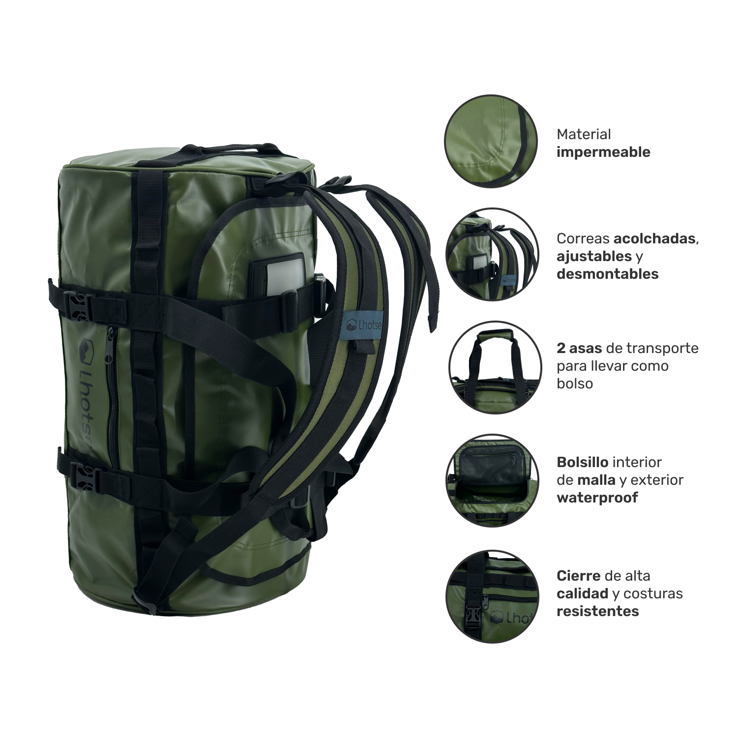 • Construcción 100% impermeable con material 500D Tarpaulin.