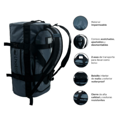 • Construcción 100% impermeable con material 500D Tarpaulin.