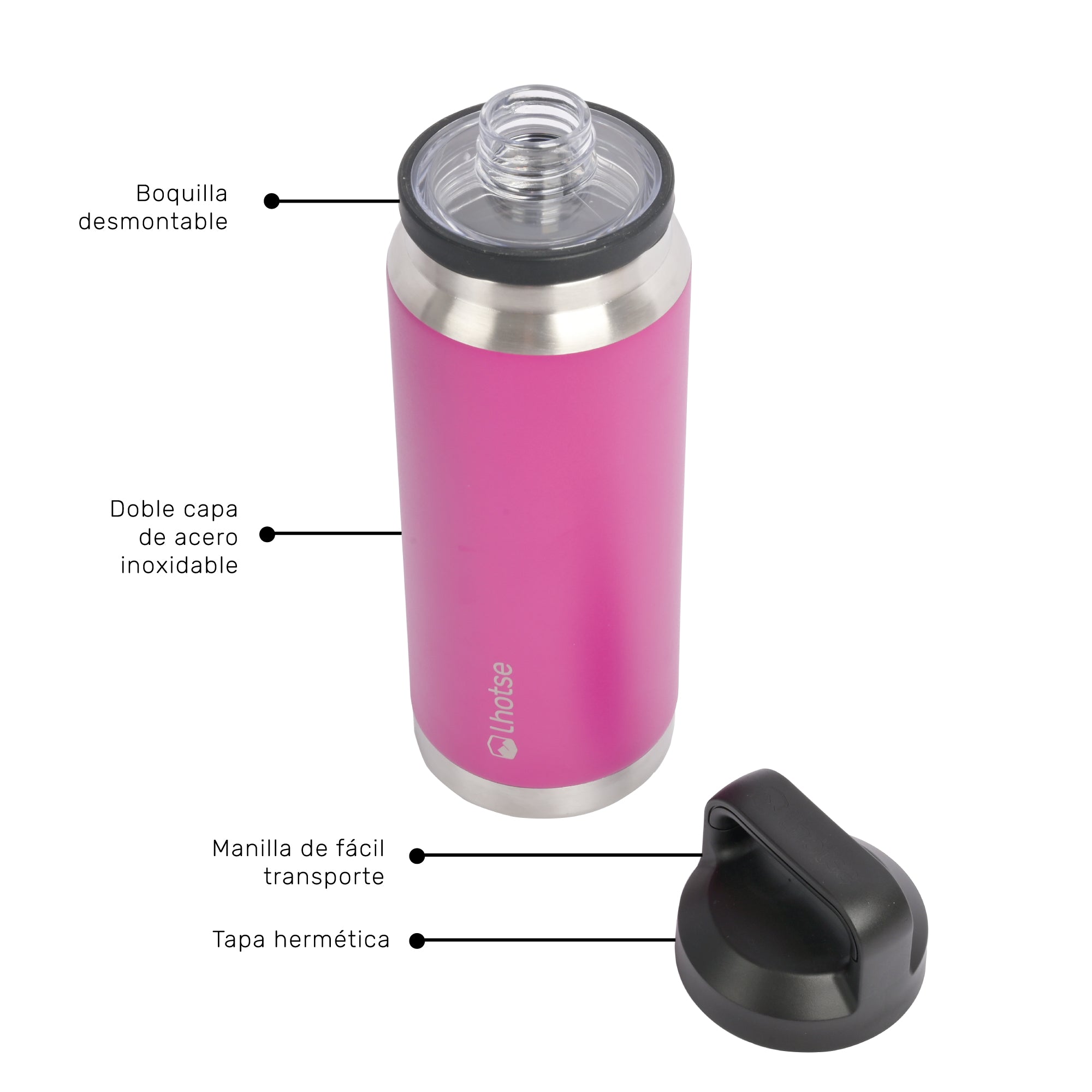 • Boca ancha para fácil limpieza y llenado.