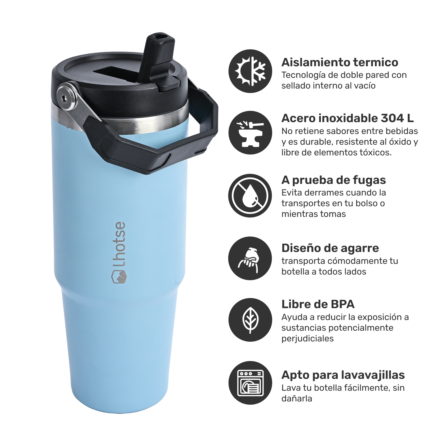 • Acero inoxidable 18/8; Libre de BPA.