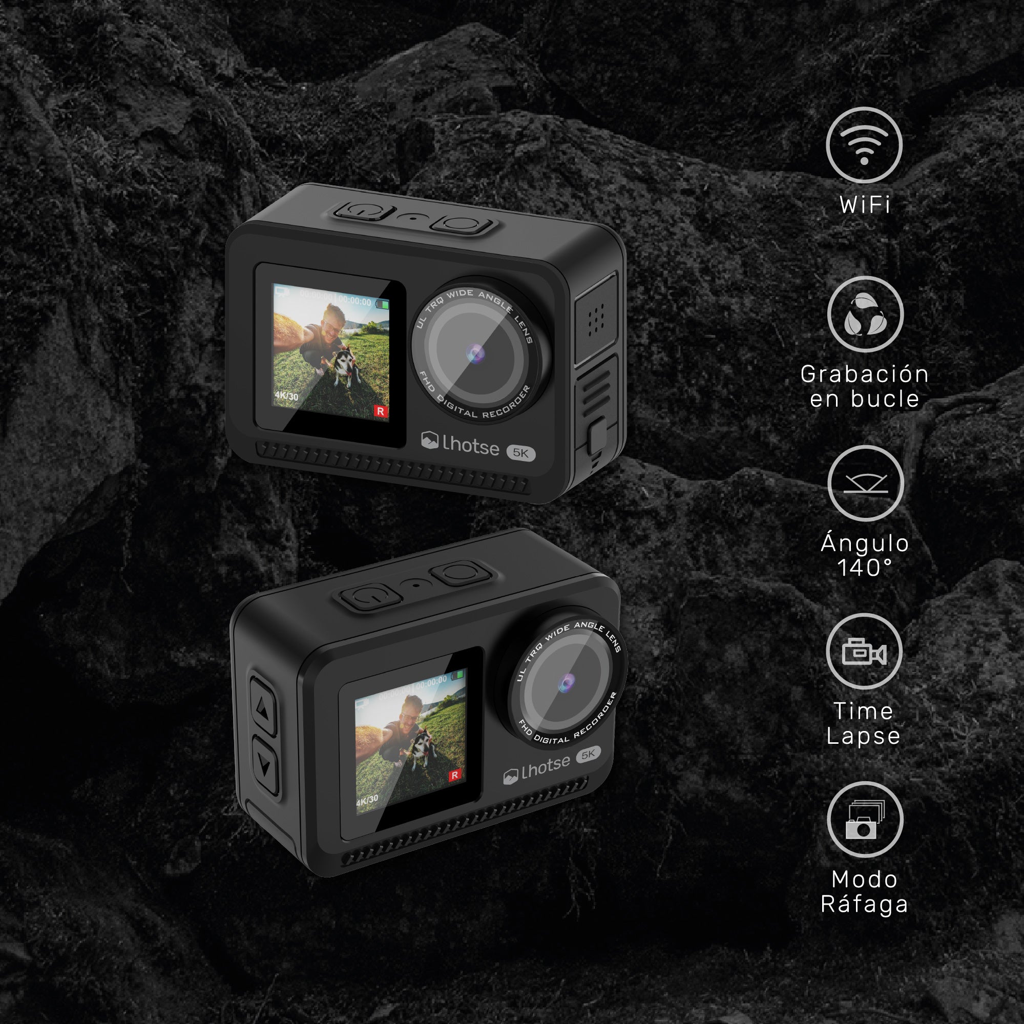 Captura la aventura en su máxima expresión con la Cámara de Acción Doble 5K 60fps PeakPro de Lhotse, diseñada para los amantes del outdoor y los deportes extremos. Esta cámara es tu mejor aliado para registrar cada instante, con una calidad de imagen y resistencia que supera los límites.