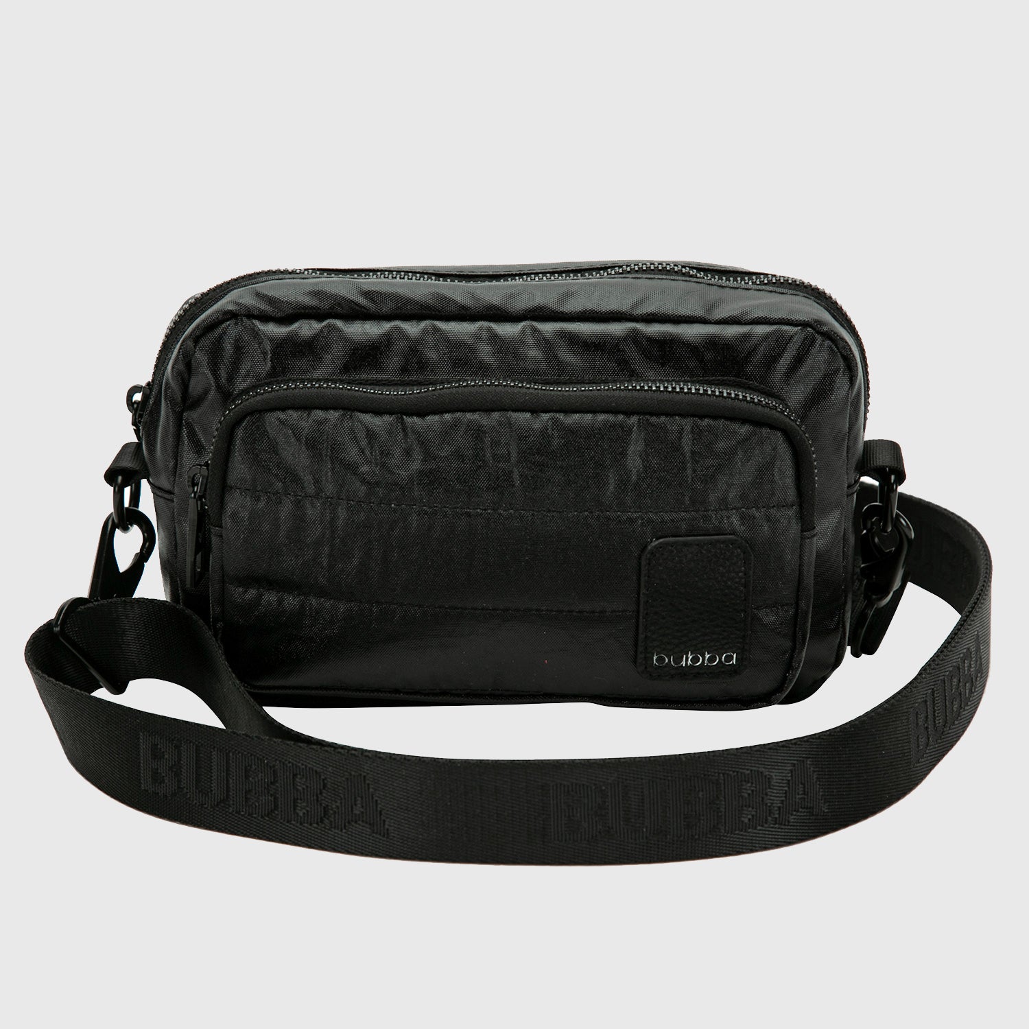 Tiene 3 compartimientos, el principal y exterior con cierre y dentro uno más pequeño. Cuenta con strap autoajustable.