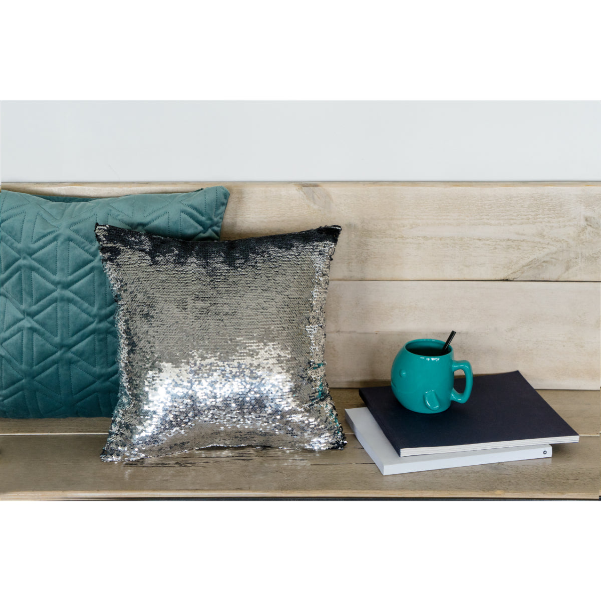 Balvi Cojín Magic Color negro/plateado Colores reversibles Incluye funda extraíble y relleno