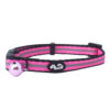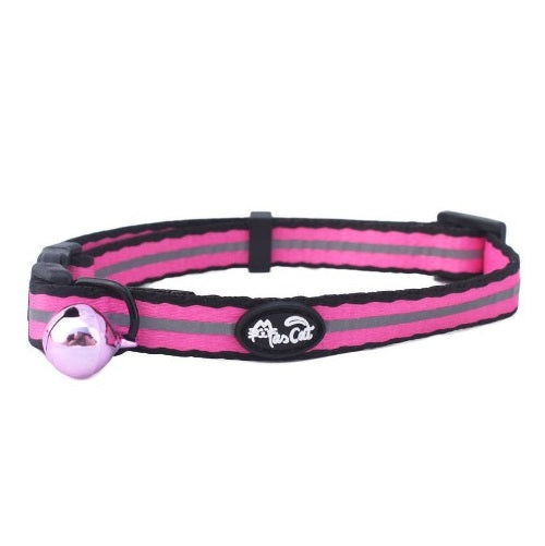 Es de material nylon, muy resistente y cómodo para nuestros felinos favoritos. Sus diseños son lindos, alegres y vienen en colores: Rojo y fucsia. De seguro tu gatito se verá muy bien con uno de estos collares y podrás tener la seguridad de encontrarlo y escucharlo, ya que también viene con un cascabel.