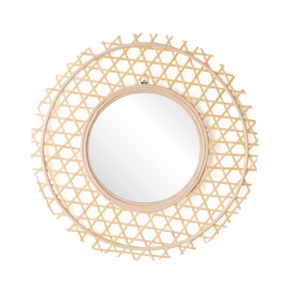 Espejo de pared decorativo redondo Amaui, mimbre y ratán natural, estilo étnico & boho chic, nórdico, bonito y moderno, ligero, para pasillo baño o entrada, ratán, color natural.