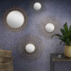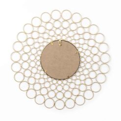 Descubre la magia del Espejo Bubble Metal Dorado BVS y añade un toque de encanto étnico y boho chic a tu hogar. Este espejo redondo de pared decorativo captura la esencia del estilo nórdico, fusionando lo bonito y lo moderno en una pieza de diseño excepcional. Con su ligereza y dimensiones de 50x50x1 cm, es perfecto para realzar cualquier pasillo, baño o entrada. El metal dorado resplandece con elegancia, agregando un brillo sutil a tus espacios.