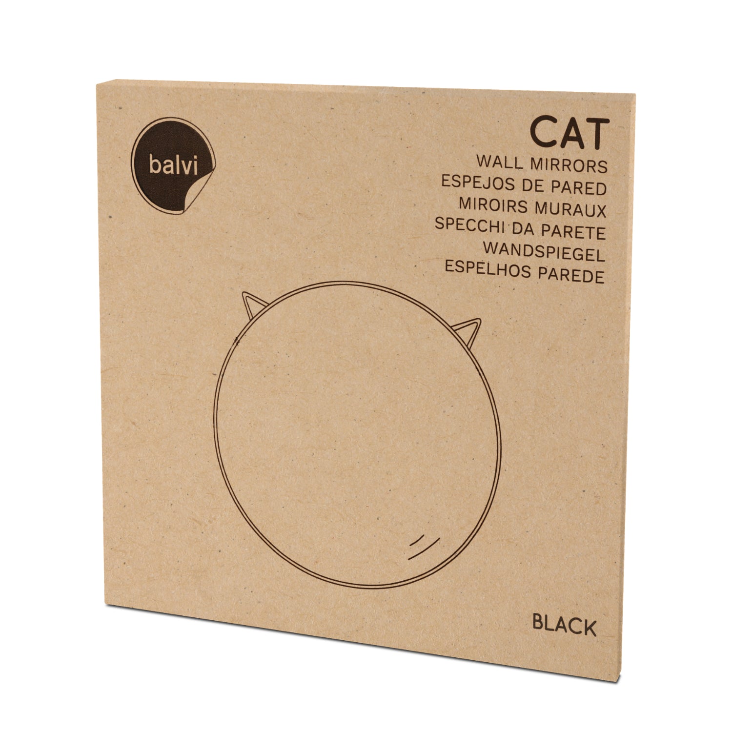 Balvi Espejo pared Cat Espejo redondo con forma de cara de gato Marco negro Metal