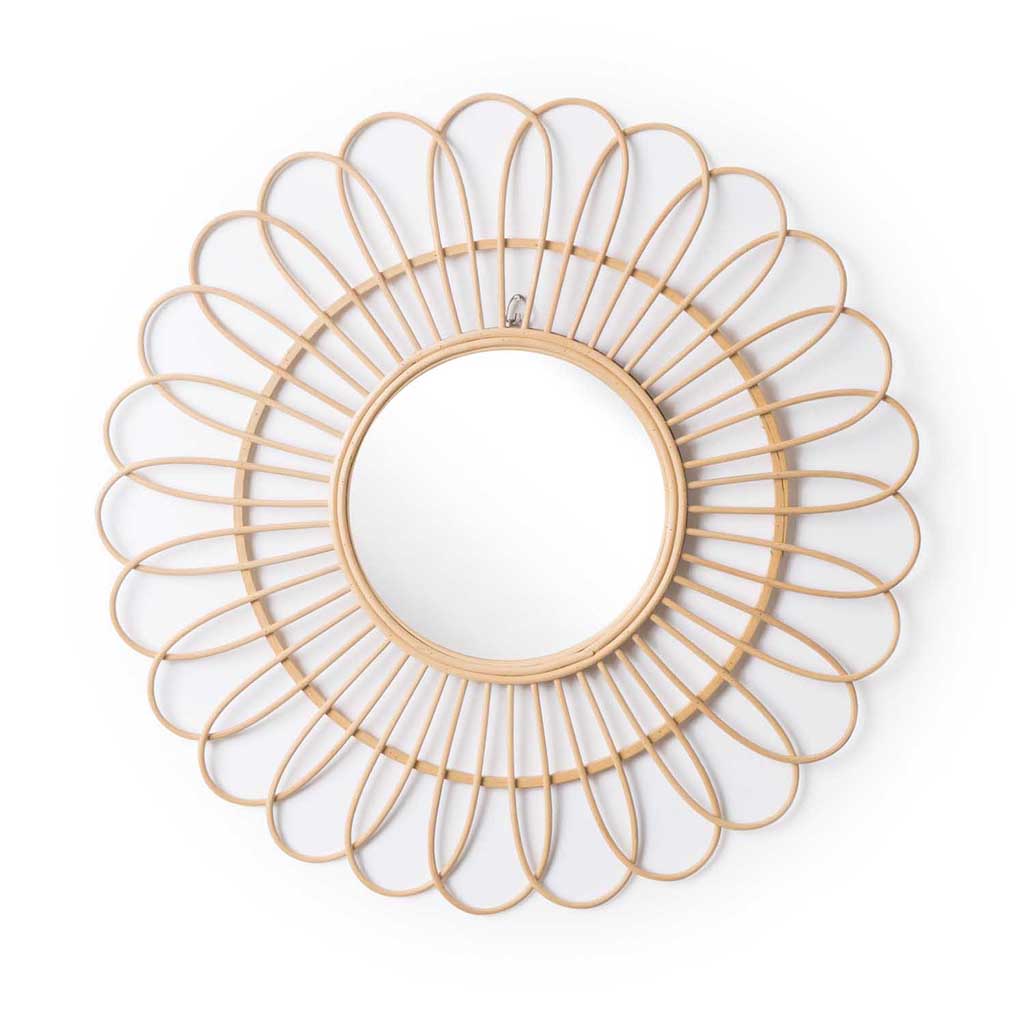 Espejo de pared decorativo redondo Kahala, ratán natural, estilo étnico & boho chic, nórdico, bonito y moderno, ligero, para pasillo baño o entrada, ratán, color natural.