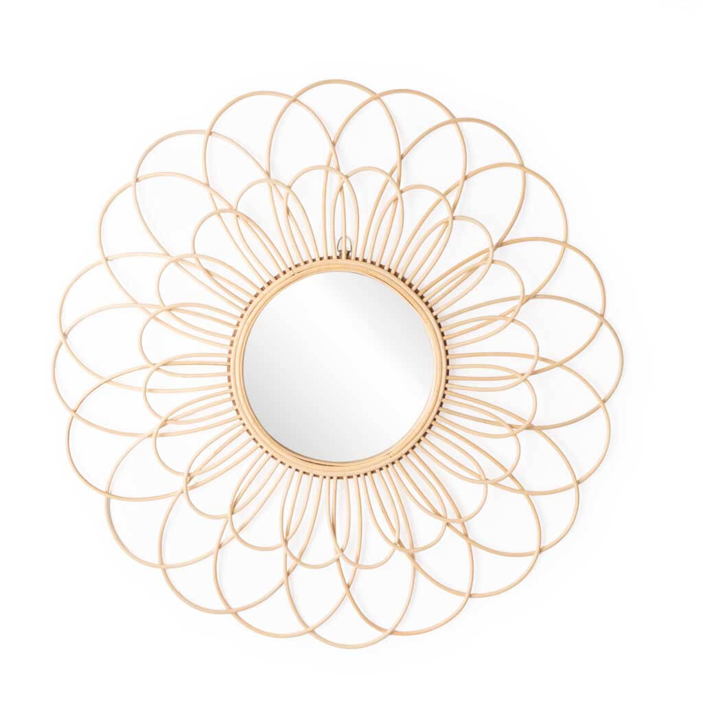 Espejo de pared decorativo redondo Mele, mimbre y ratán natural, estilo étnico & boho chic, nórdico, bonito y moderno, ligero, para pasillo baño o entrada, ratán, color natural.