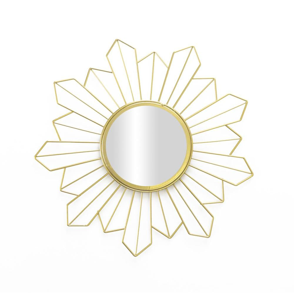 Espejo Pared Arrow, Redondo Dorado BVS. Espejo de pared decorativo, metálico, estilo étnico & boho chic, nórdico, bonito y moderno, ligero, para pasillo baño o entrada, metal, color dorado.