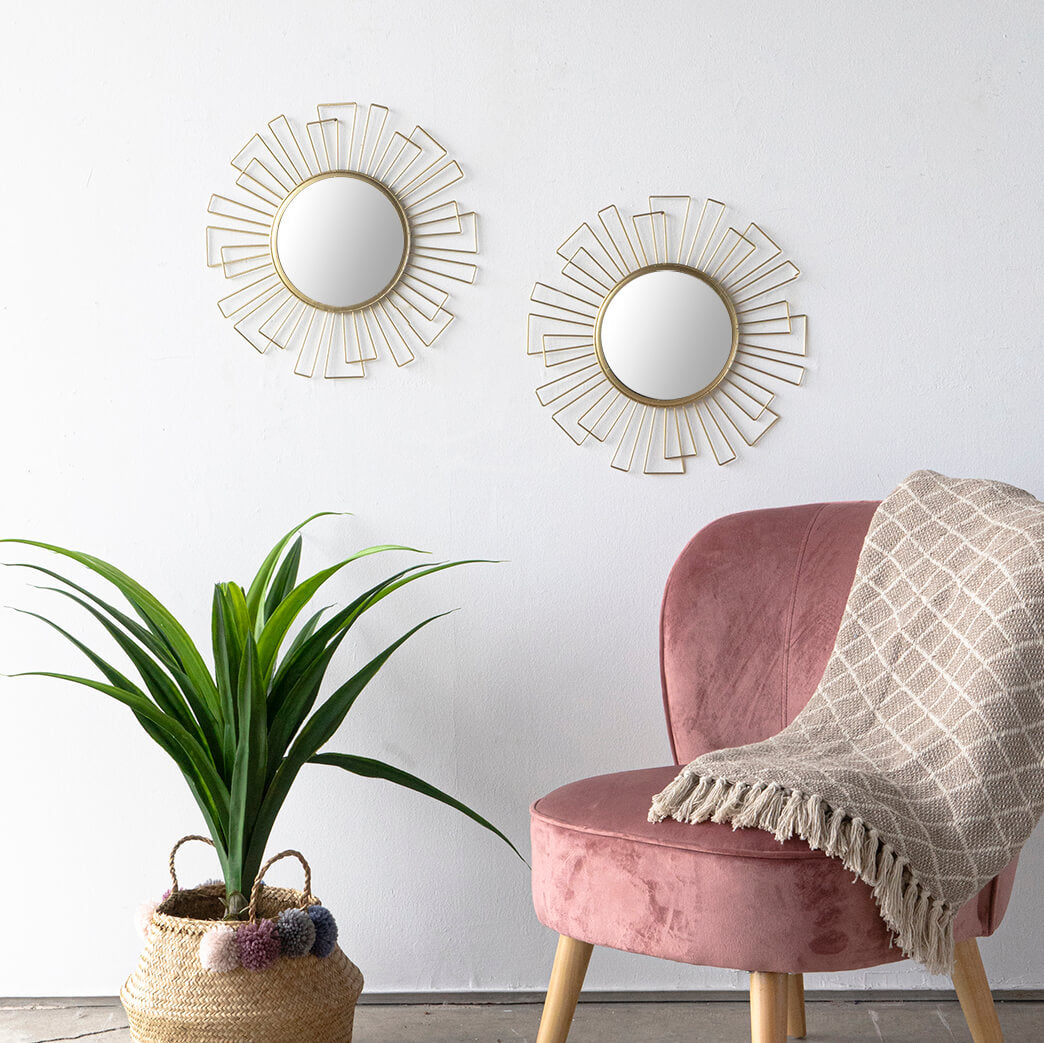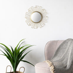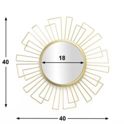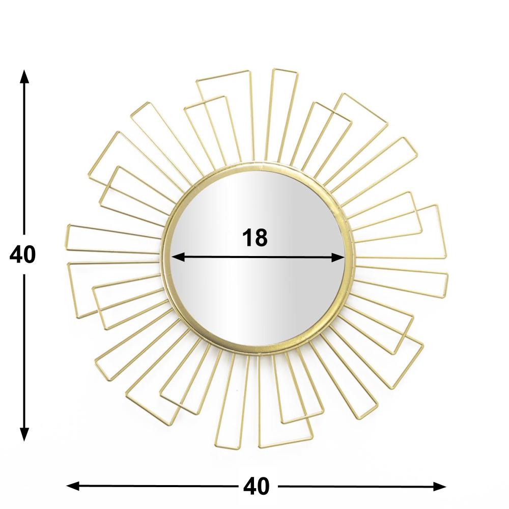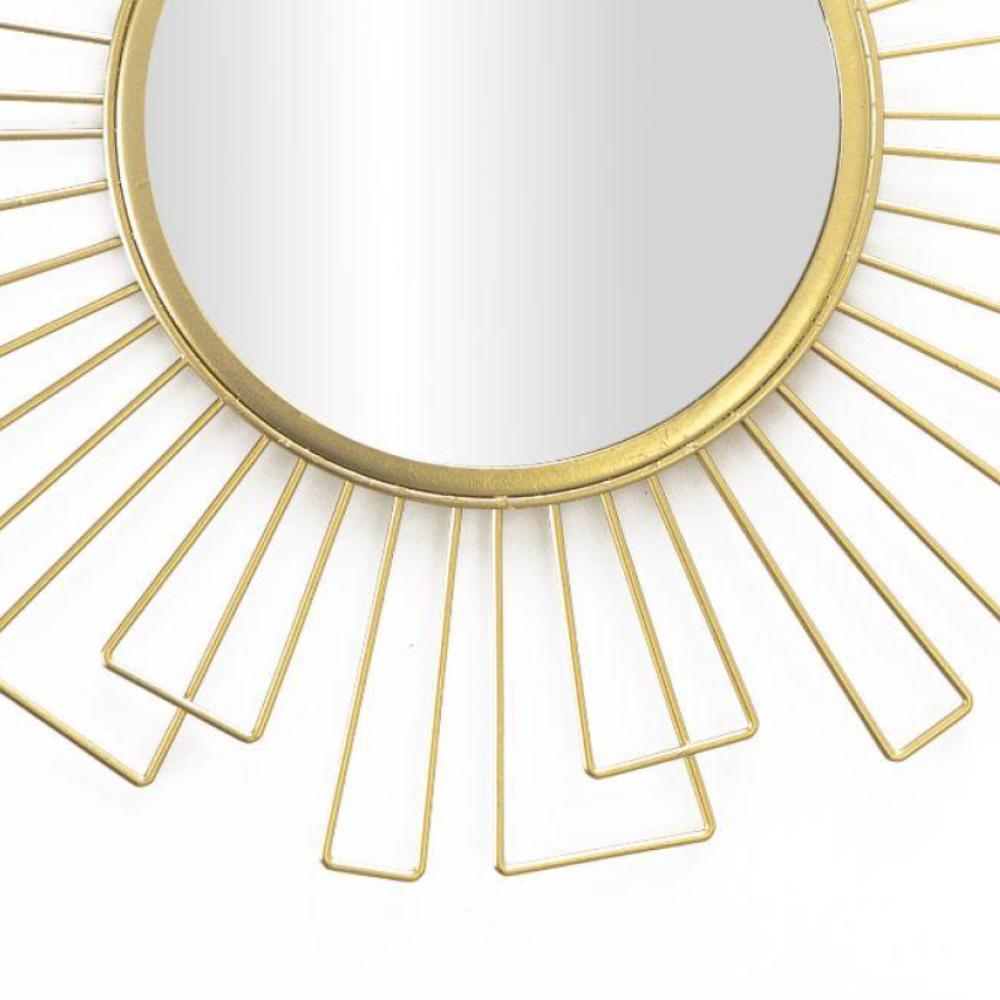 Espejo Pared Art Deco, Redondo Dorado BVS. Espejo de pared decorativo, metálico, estilo étnico & boho chic, nórdico, bonito y moderno, ligero, para pasillo baño o entrada, metal, color dorado.