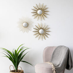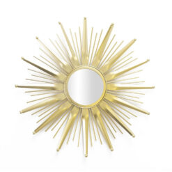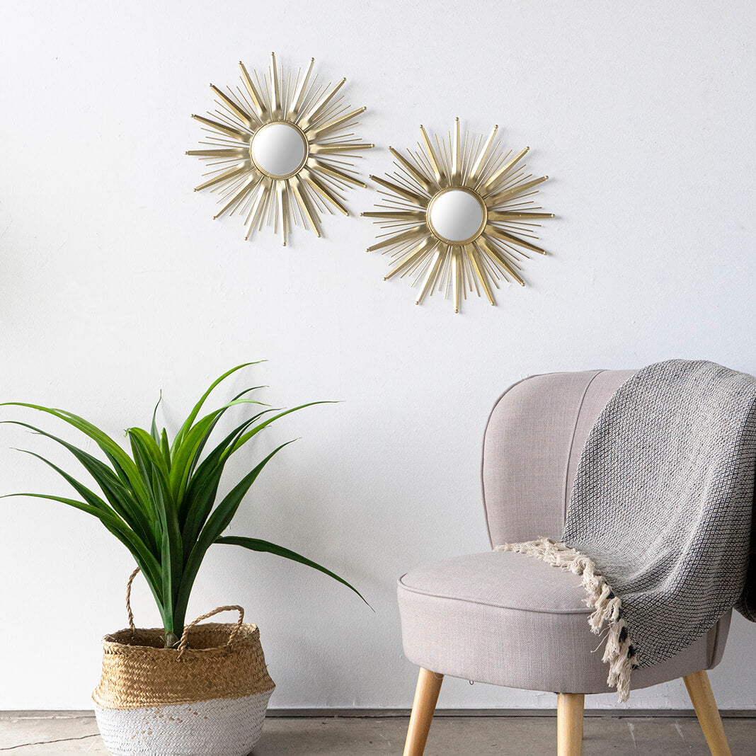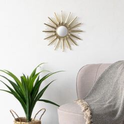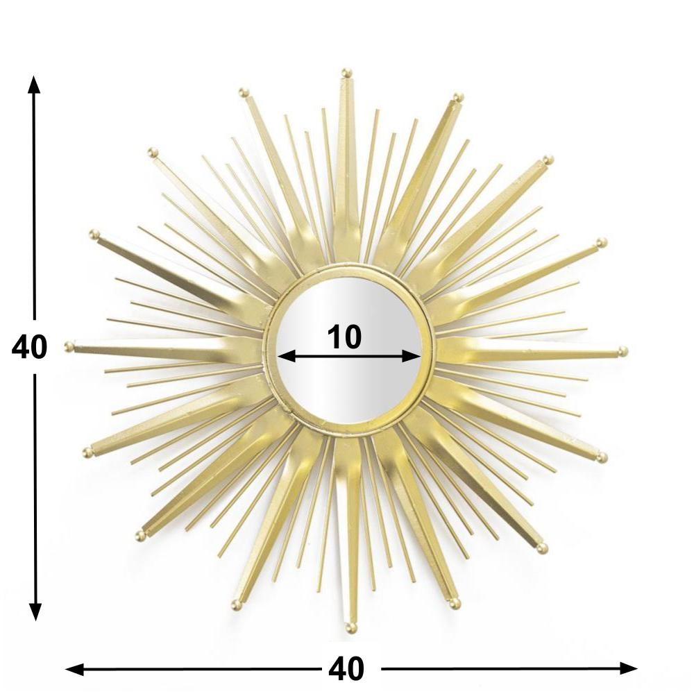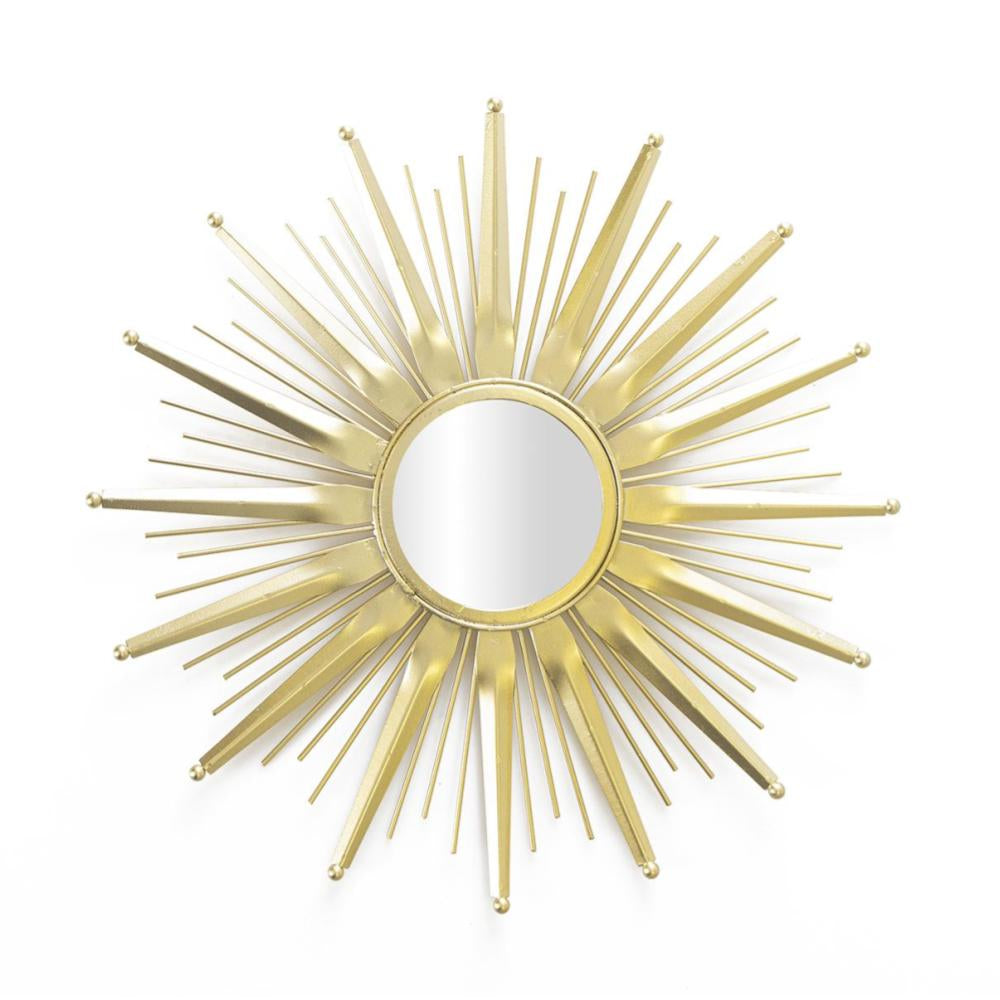 Espejo Pared Spark, Redondo Dorado BVS. Espejo de pared decorativo, metálico, estilo étnico & boho chic, nórdico, bonito y moderno, ligero, para pasillo baño o entrada, metal, color dorado.