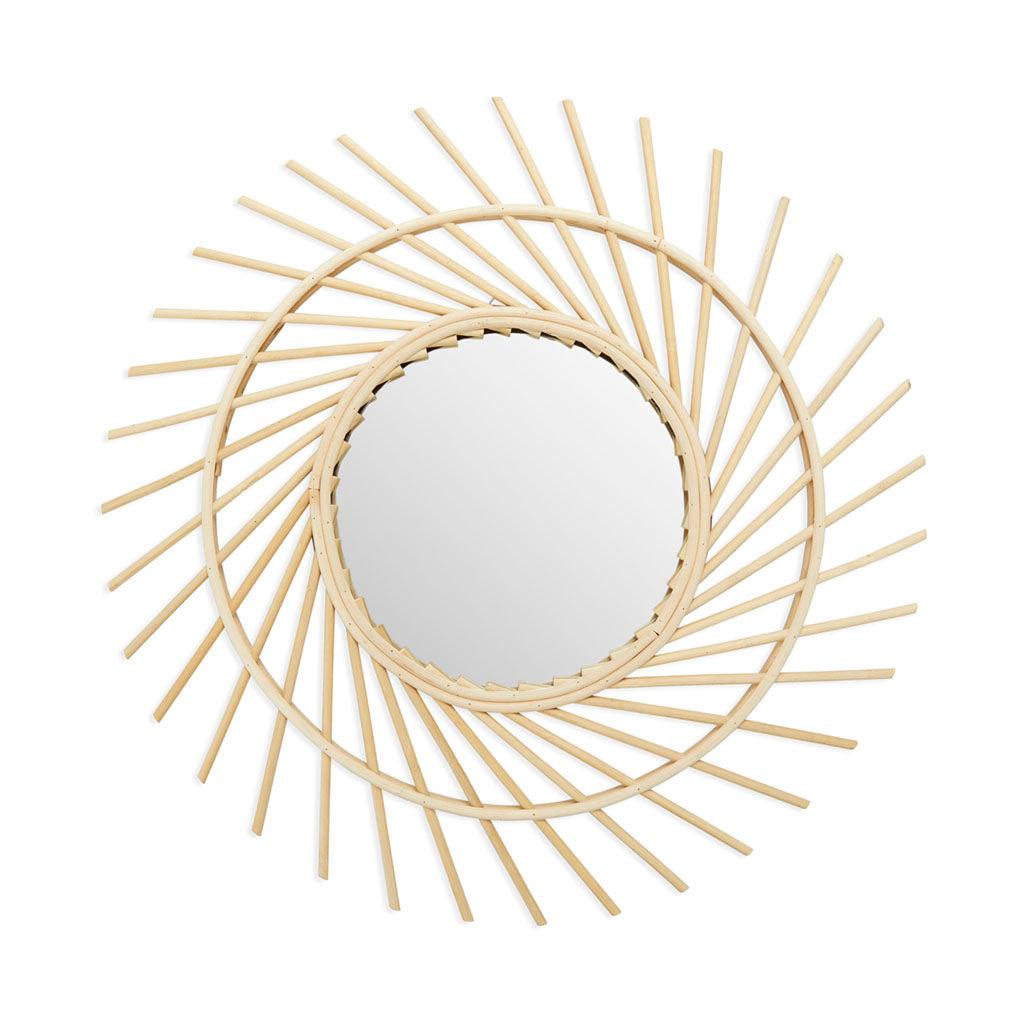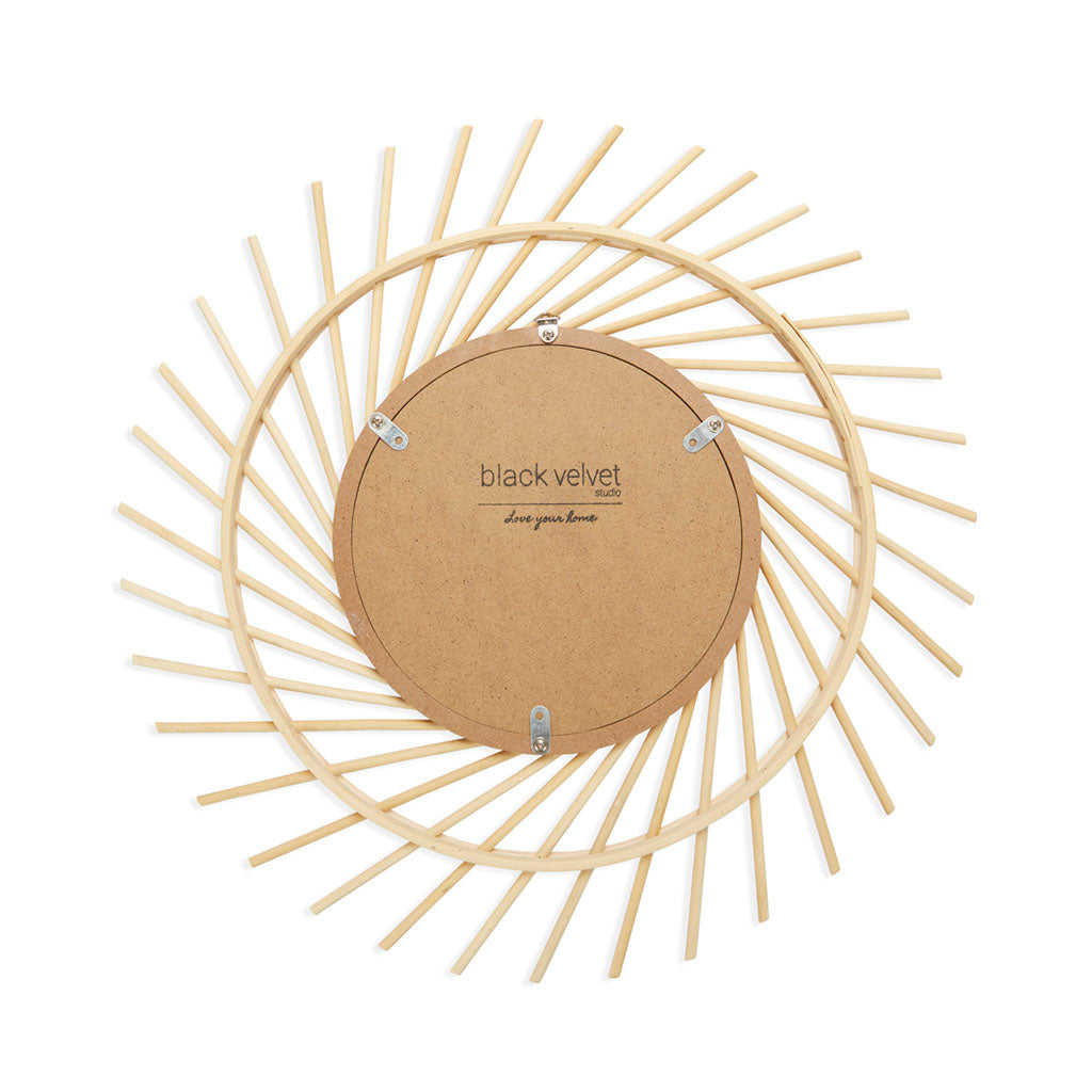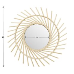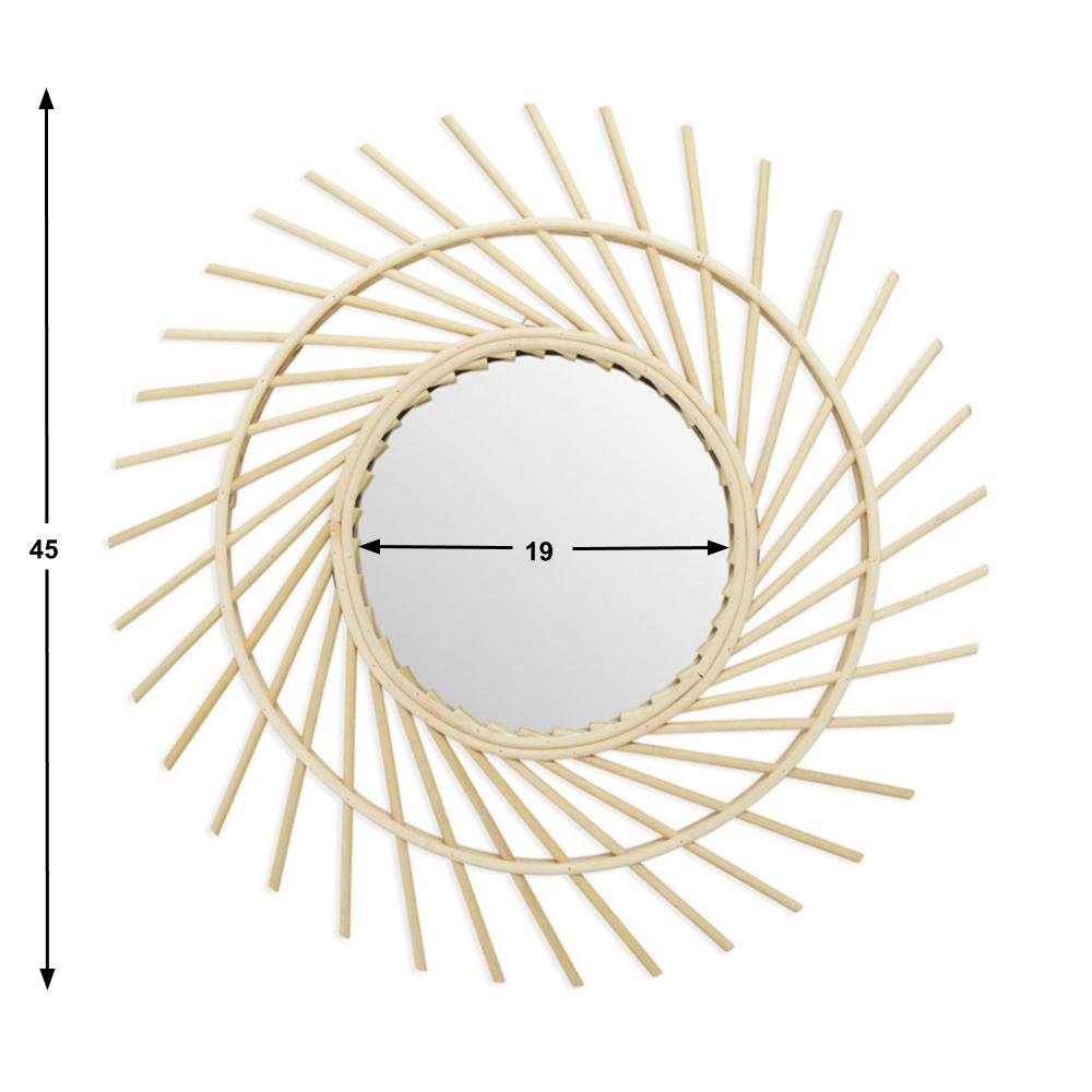 Espejo pared de diseño Serifos, para dormitorio, bambú, color natural, forma de sol, para pasillo baño o entrada.