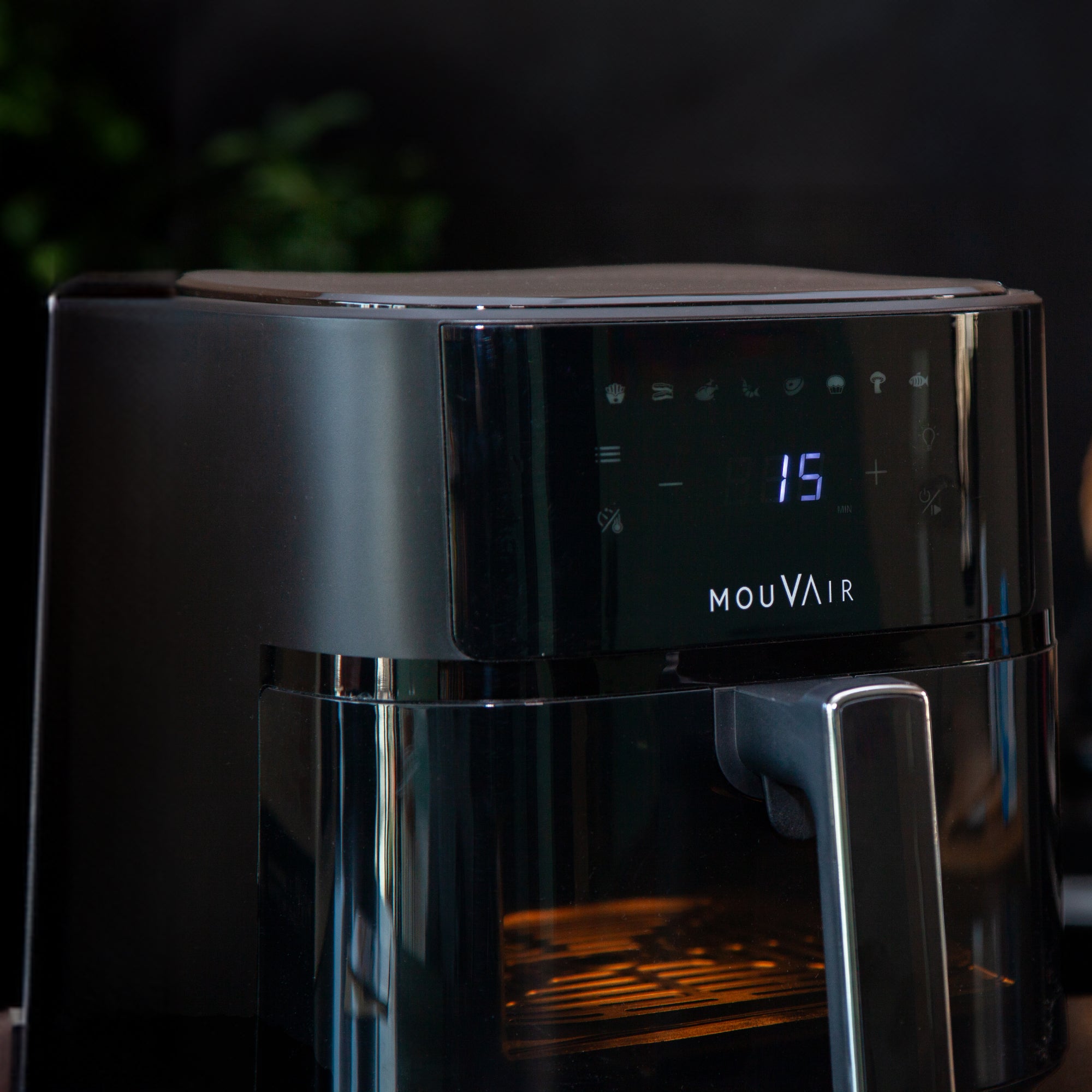 Nuestra nueva freidora de aire, ¡ahora con ventana! Con tu Mouvair Clear Fry cocinar y revisar tu preparación será más fácil que nunca. No solo trae ajustes funcionales y rápidos para cocinar pollo, carnes, vegetales, repostería, pescados y más, sino que también tiene un diseño único que aportará elegancia a tu cocina.