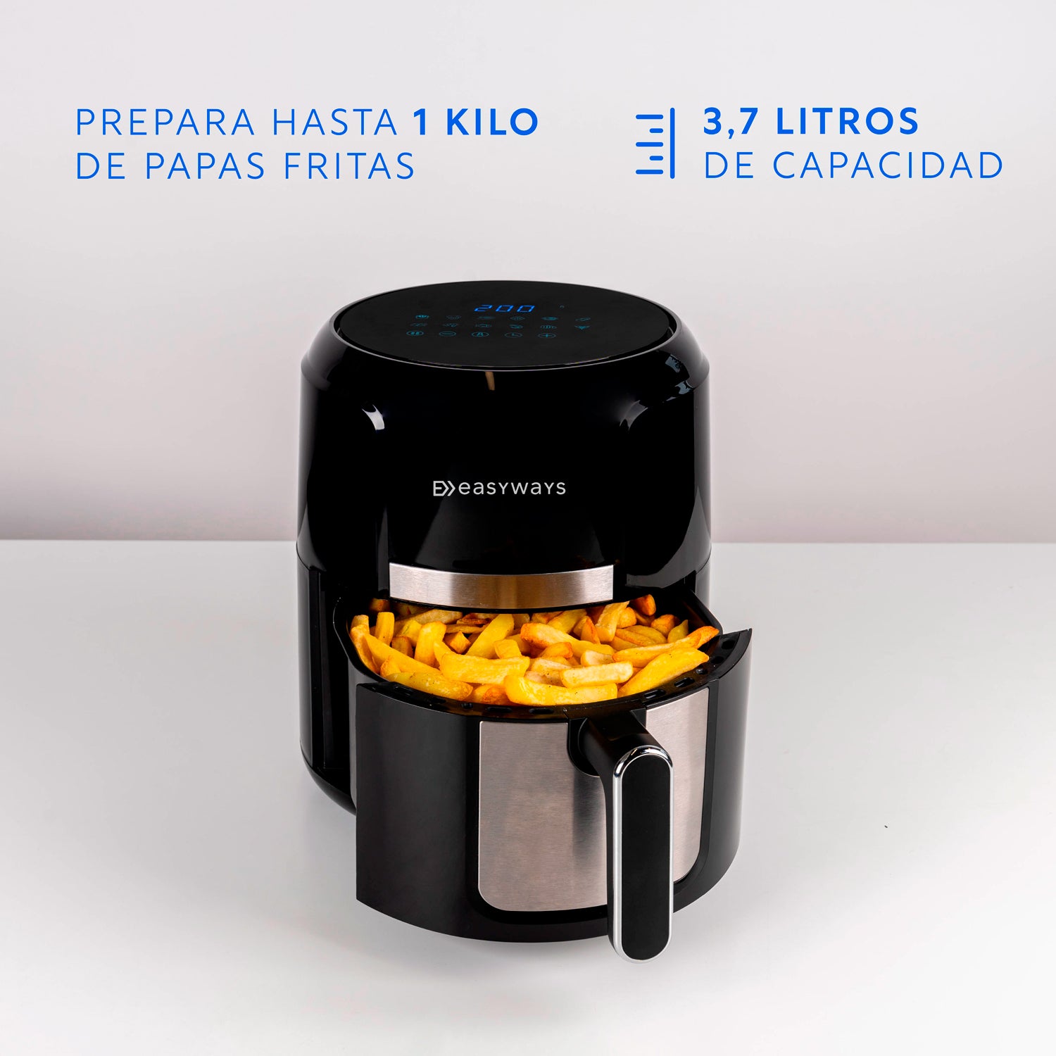 Cajón: Es intuitivo y cómodo de usar. Y porque sabemos que siempre faltan papas fritas, sus 3.7 litros de capacidad te permitirán cocinar hasta un kilo.