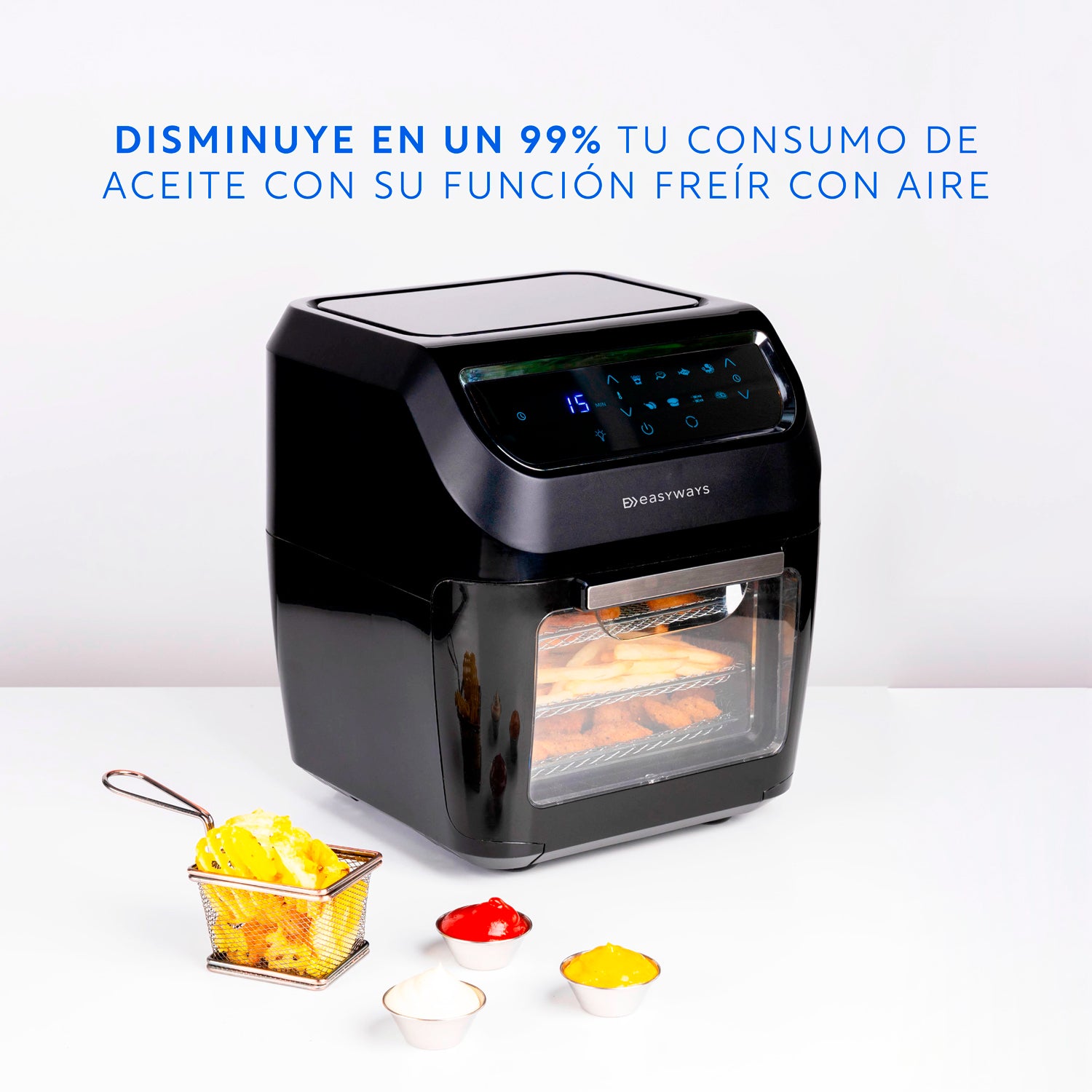 Podrás cocinar recetas sanas y variadas con tu Air Fryer Plus, que cambiará tu forma de cocinar en forma rápida y sana, sustituyendo la cocina tradicional o como complemento para tu Robot de Cocina Easyways.