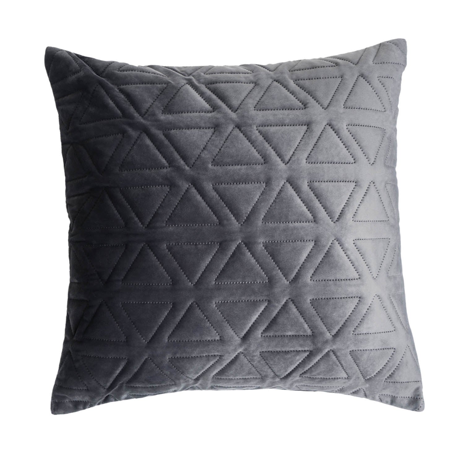 Renueva tu espacio con la elegante Funda cojín Triangle de 100% poliéster en tonos gris oscuro, terciopelo liso. Este cojín encaja a la perfección con el Estilo Nórdico, destacando en la tendencia actual de materiales naturales, patrones geométricos, inspiración vintage y colores neutros.