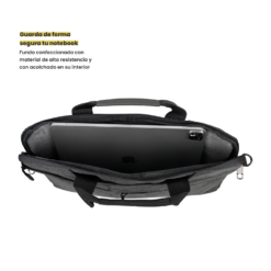 La capacidad de 4 litros de esta funda maletín brinda suficiente espacio para tus pertenencias esenciales, sin abrumarte con un tamaño excesivo. Además, su diseño interior permite acomodar notebooks de hasta 15,6 pulgadas, lo que la convierte en una opción versátil para una amplia gama de dispositivos.