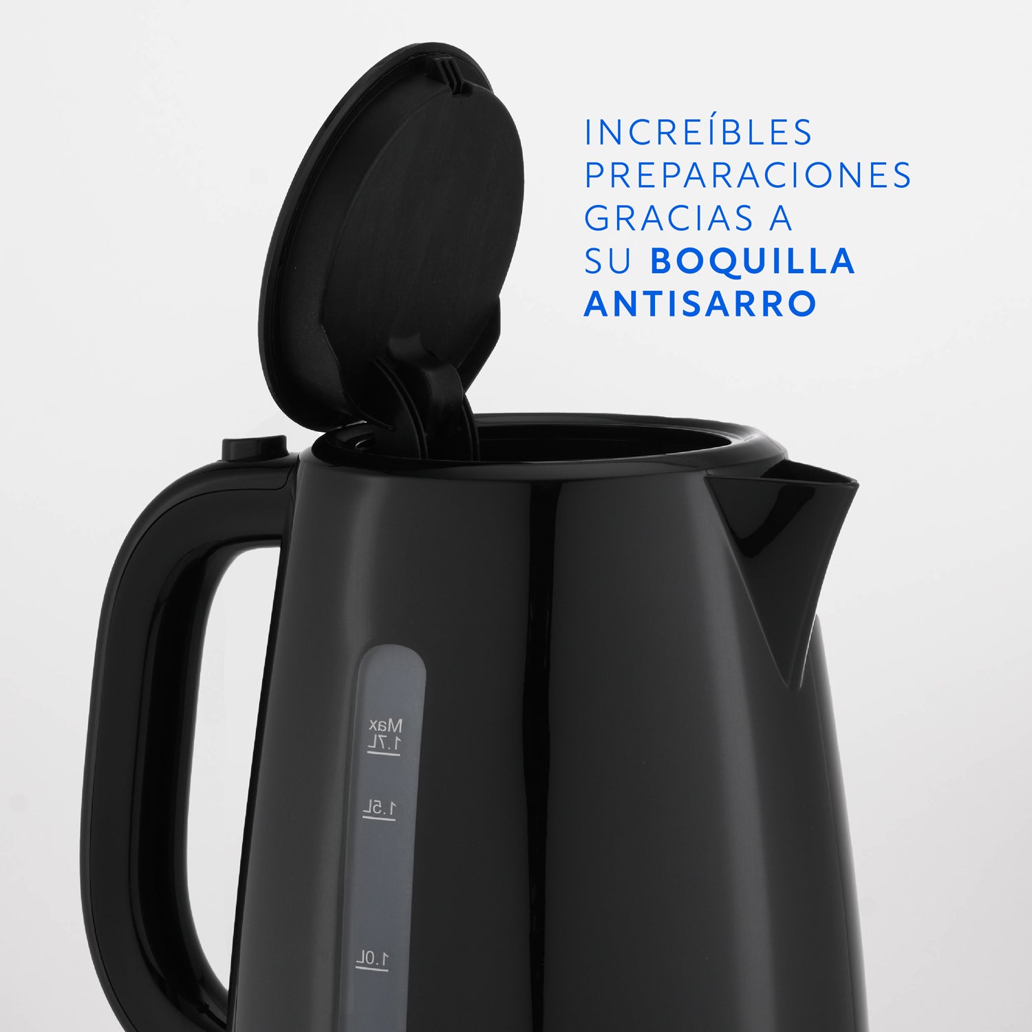 No te preocupes por el sarro en tus cafés o tés. El Hervidor Black de EasyWays cuenta con una boquilla antisarro que permitirá que nada se cuele.