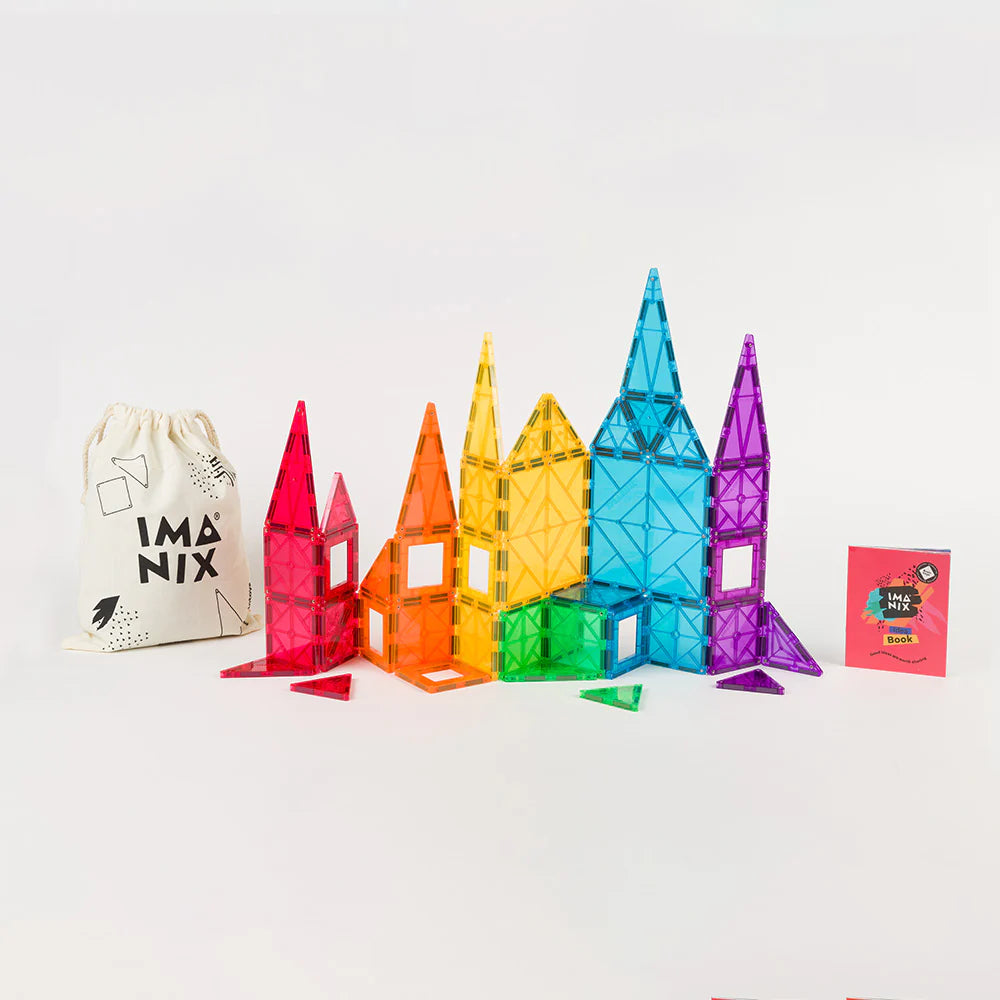¡Prepárate para desafiar la gravedad y explorar la emoción de construir y desarmar con las figuras magnéticas y bloques de construcción IMANIX de 60 piezas!