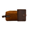 Neceser de cuero hecho a mano con manilla para su mejor agarre, interior forrado en tela para un mayor cuidado de los objetos, cierre metálico.