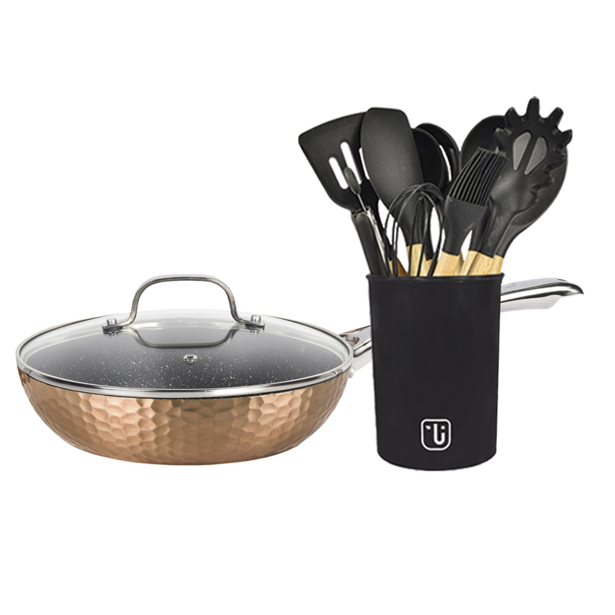 Copper Collection está cuidadosamente diseñada para entregarte un producto duradero, con un hermoso acabado martillado que agrega un toque de calidez y elegancia a la cocina.