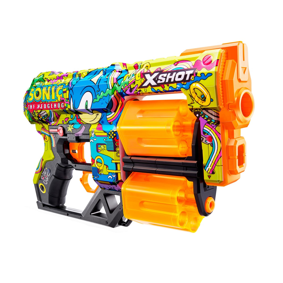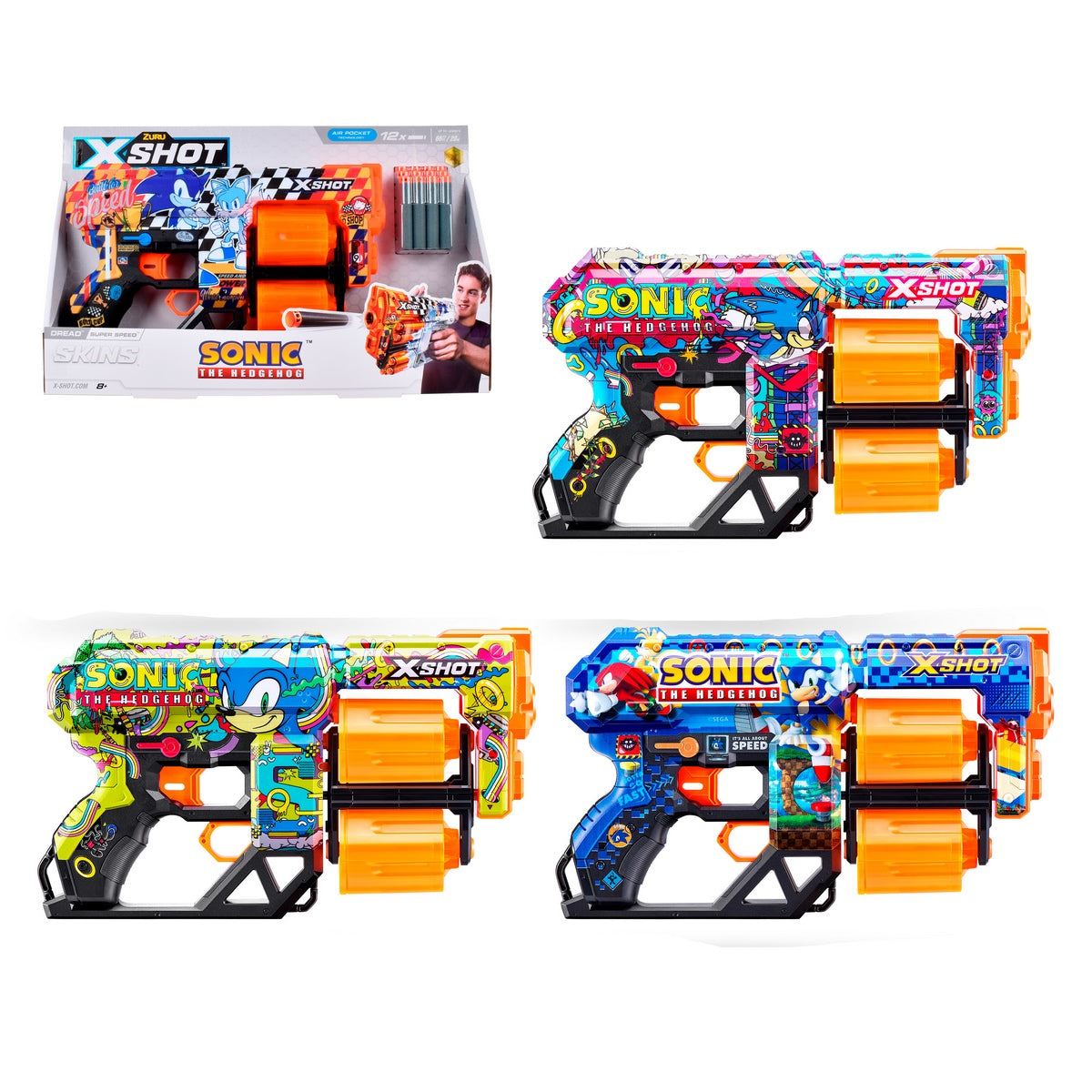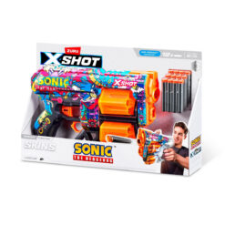 El nuevo lanzador de dardos Skins Sonic de X-Shot le ofrecerá a los más pequeños de la casa interminables horas de juego y diversión, demostrando su habilidad y puntería alcanzando a todos sus contrincantes. Diseñada con un barril giratorio automático que tiene capacidad para disparar hasta 12 dardos en cuestiones de segundos gracias a su mecanismo de carga fácil y disparo. Tecnología de bolsillo de aire manteniendo a los niños en total movimiento de una manera más entretenida e interactiva promoviendo el juego físico y social. Además, este juguete es perfecto ya que contribuye en el desarrollo de la creatividad, potencia la puntería, destreza, la comprensión causa/efecto y la orientación espacial. Incluye 12 dardos de espuma X-Shot.