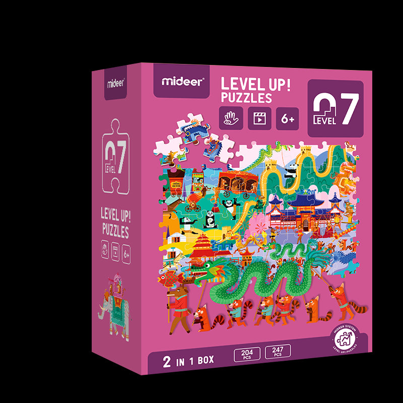 La serie Level Up Puzzles son rompecabezas divertidos y educativos con una belleza artística que ayudarán a desarrollar el potencial cerebral de los niños paso a paso. Dividida en siete niveles, esta serie coincide con el desarrollo mental de los niños, con el objetivo de mejorar su pensamiento lógico, coordinación ojo-mano, cognición multidimensional y desarrollar su concentración. De 2 a 247 piezas, simples a complejas, las ilustraciones de esta serie, dibujadas por una artista e ilustradora francesa, Maud Lienard, brindan a los niños una experiencia estética de alta calidad.