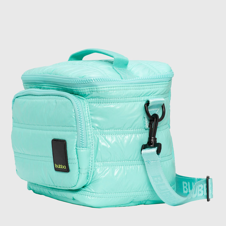 Nuestra clásica lonchera ahora en material RECICLADA! Tela a partir de botellas PET. Amada y cómoda lonchera para llevar tu comida y/o bebestibles donde quieras. Cuenta con bolsillo frontal más pequeño, compartimiento grande con un estuche removible trasparente adentro para llevar liquidos como aderezos sin miedo a que se derramen. Se parte de BUBBA MOVE! Medidas: 21 x 21 x 18 cm