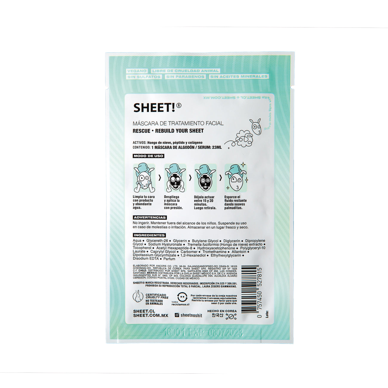 Mascarilla facial RESCUE, Con colágeno vegano de champiñón