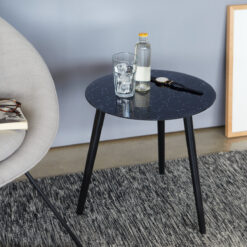Balvi Mesa auxiliar Cosmos Tablero de vidrio con la imagen de las constelaciones y patas de madera Diametro: 40 cm