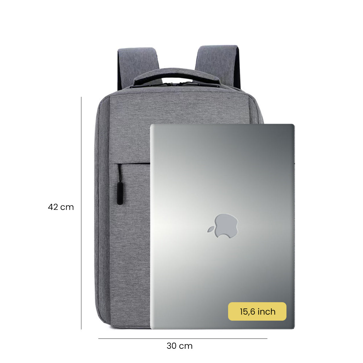 Mochila para Notebook con Puerto USB 15″ Levo, perfecta para ir al trabajo o para la universidad. Incluye compartimiento para tu computador de hasta 15,6″. Tiene 1 bolsillo exterior con sistema antirrobo y compartimientos al interior para tus accesorios. Sus correas son ajustables y acolchadas para mayor comodidad. ¿Lo mejor? Incluye puerto USB para conectar al interior una batería externa y poder cargar tu teléfono o lo que quieras.