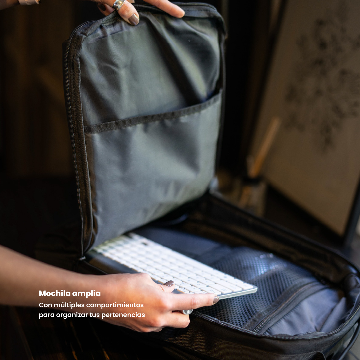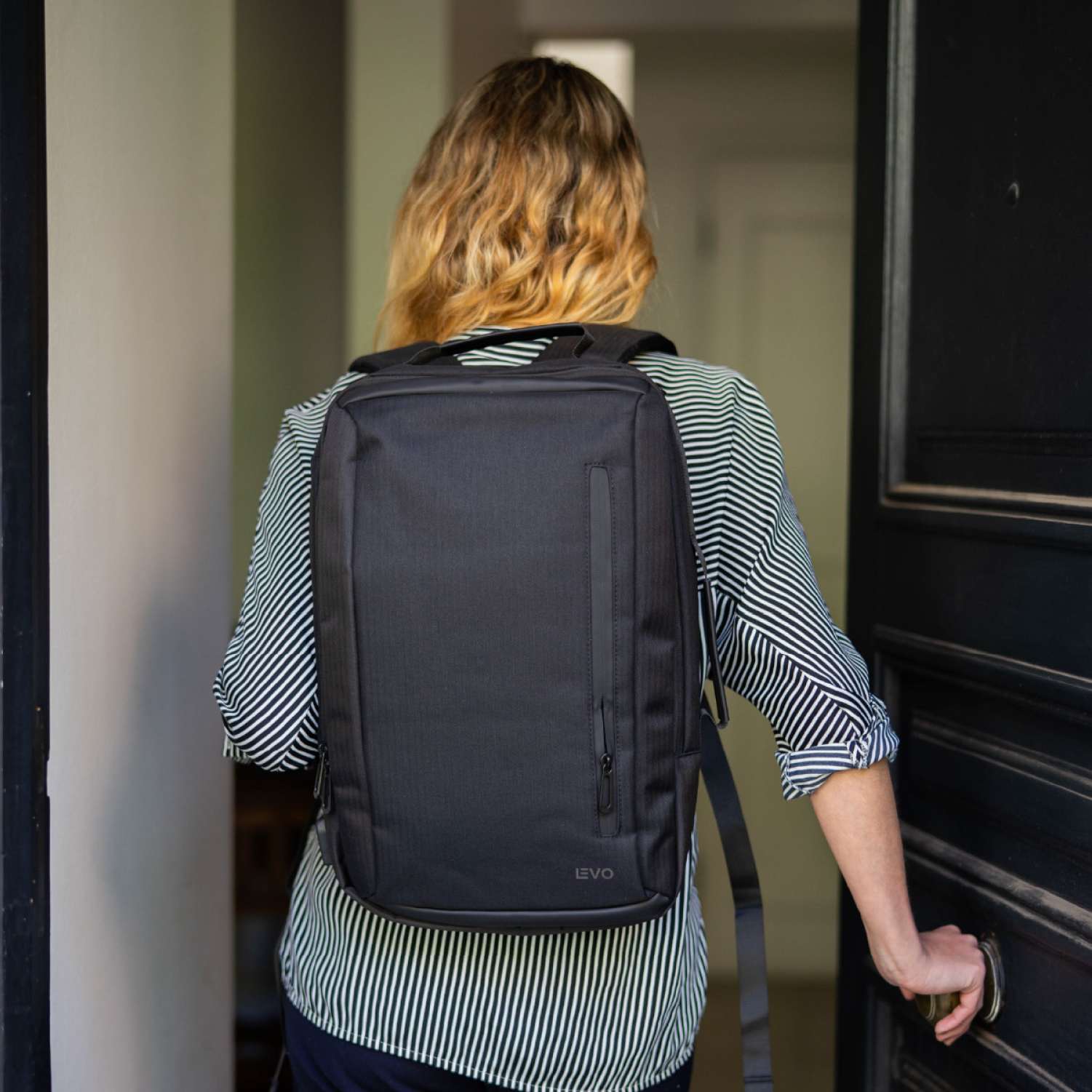 La Mochila MANAGER de LEVO: tu compañera perfecta para trabajo y viajes. Con compartimentos dedicados para tu laptop y pertenencias, está fabricada con material resistente a cortes. Además, su puerto USB integrado facilita la carga de tus dispositivos sobre la marcha. Con una generosa capacidad de 20 litros, es la combinación ideal de seguridad y funcionalidad.