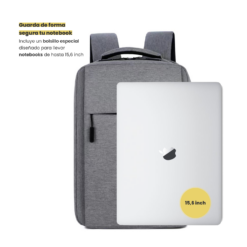 Incluye compartimiento para tu computador de hasta 15,6″. Tiene 1 bolsillo exterior con sistema antirrobo y compartimientos al interior para tus accesorios. Sus correas son ajustables y acolchadas para mayor comodidad.
