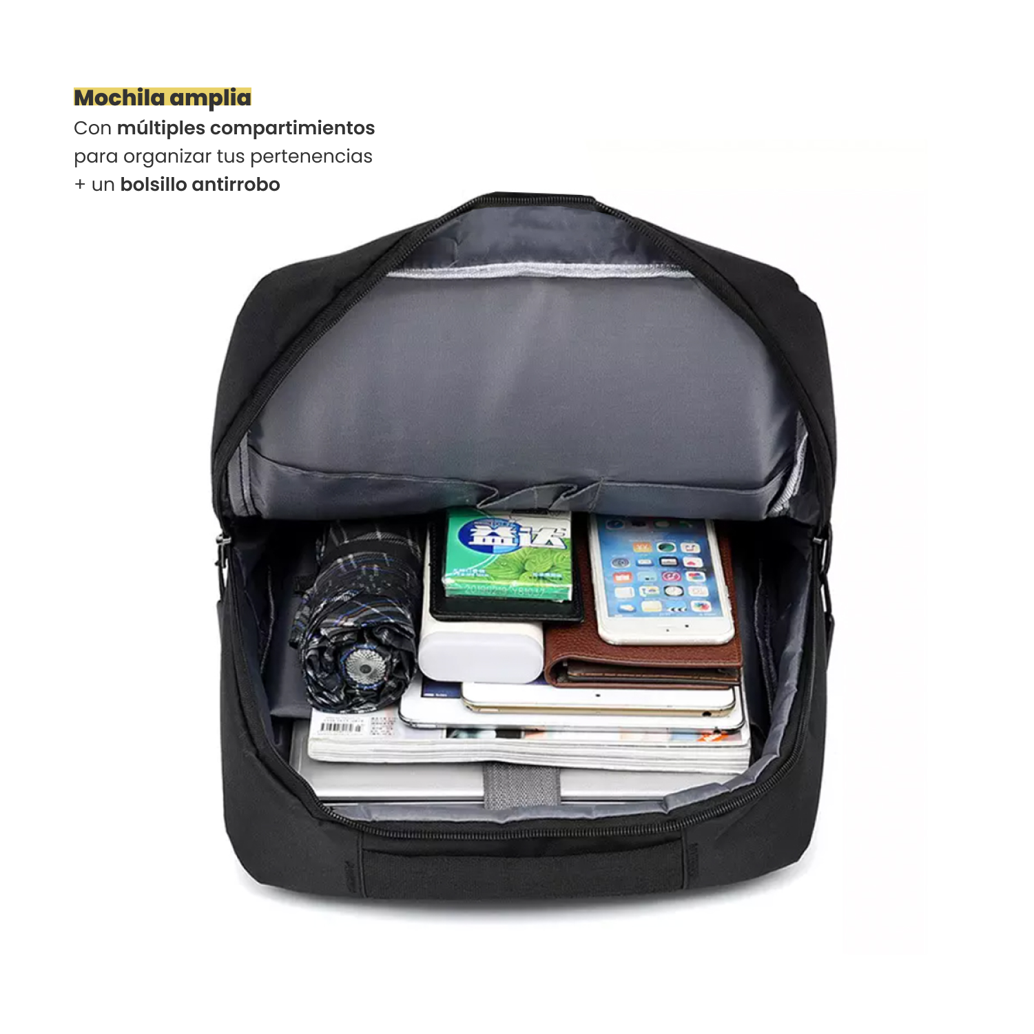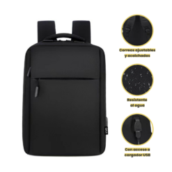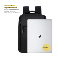 Incluye compartimiento para tu computador de hasta 15,6″. Tiene 1 bolsillo exterior con sistema antirrobo y compartimientos al interior para tus accesorios. Sus correas son ajustables y acolchadas para mayor comodidad.