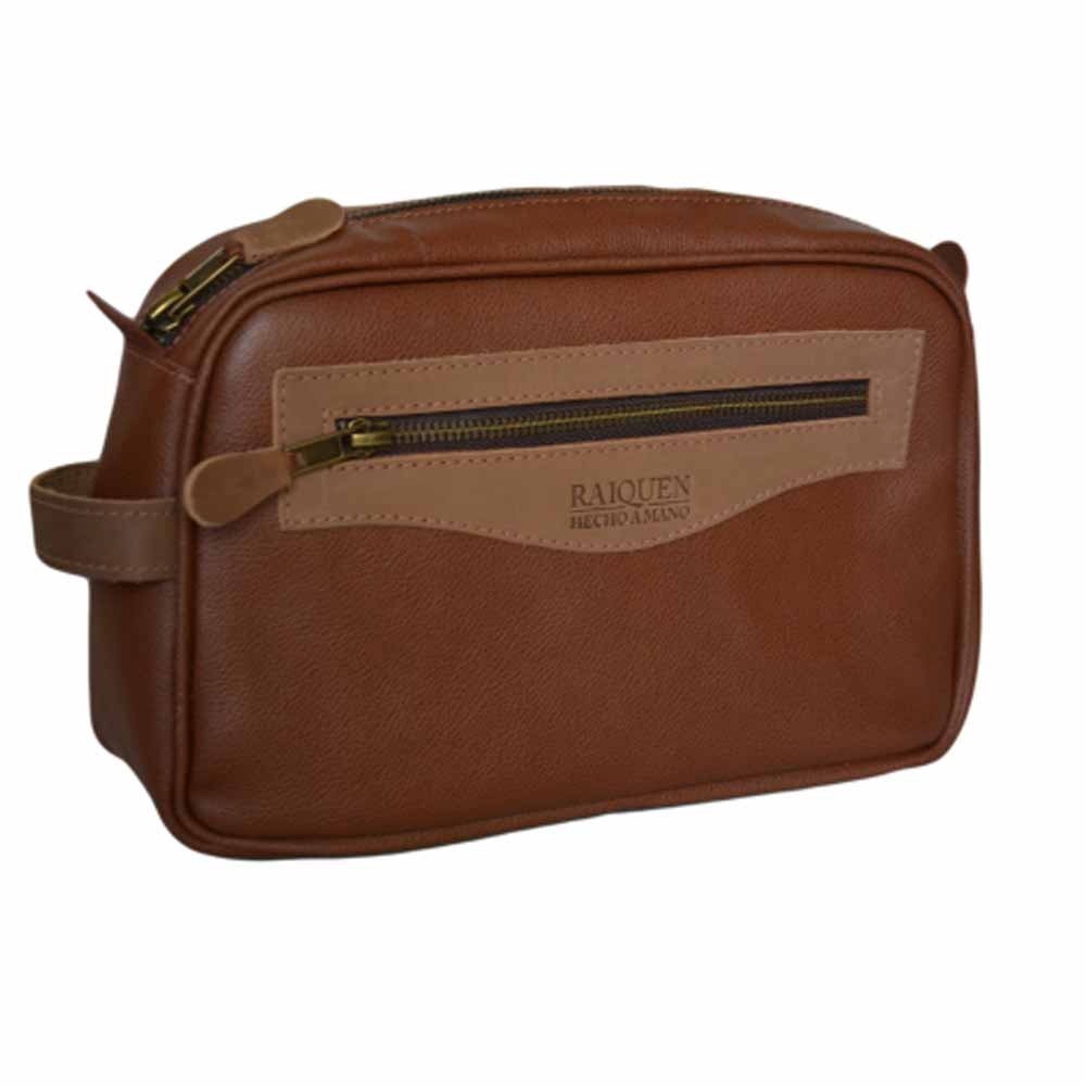 Neceser hecho a mano de Cuero Vacuno blando y suave, interior forrado impermeable, compartimiento principal con cierre y bolsillo al frente, perfecto para llevar lo más importante de manera organizada.